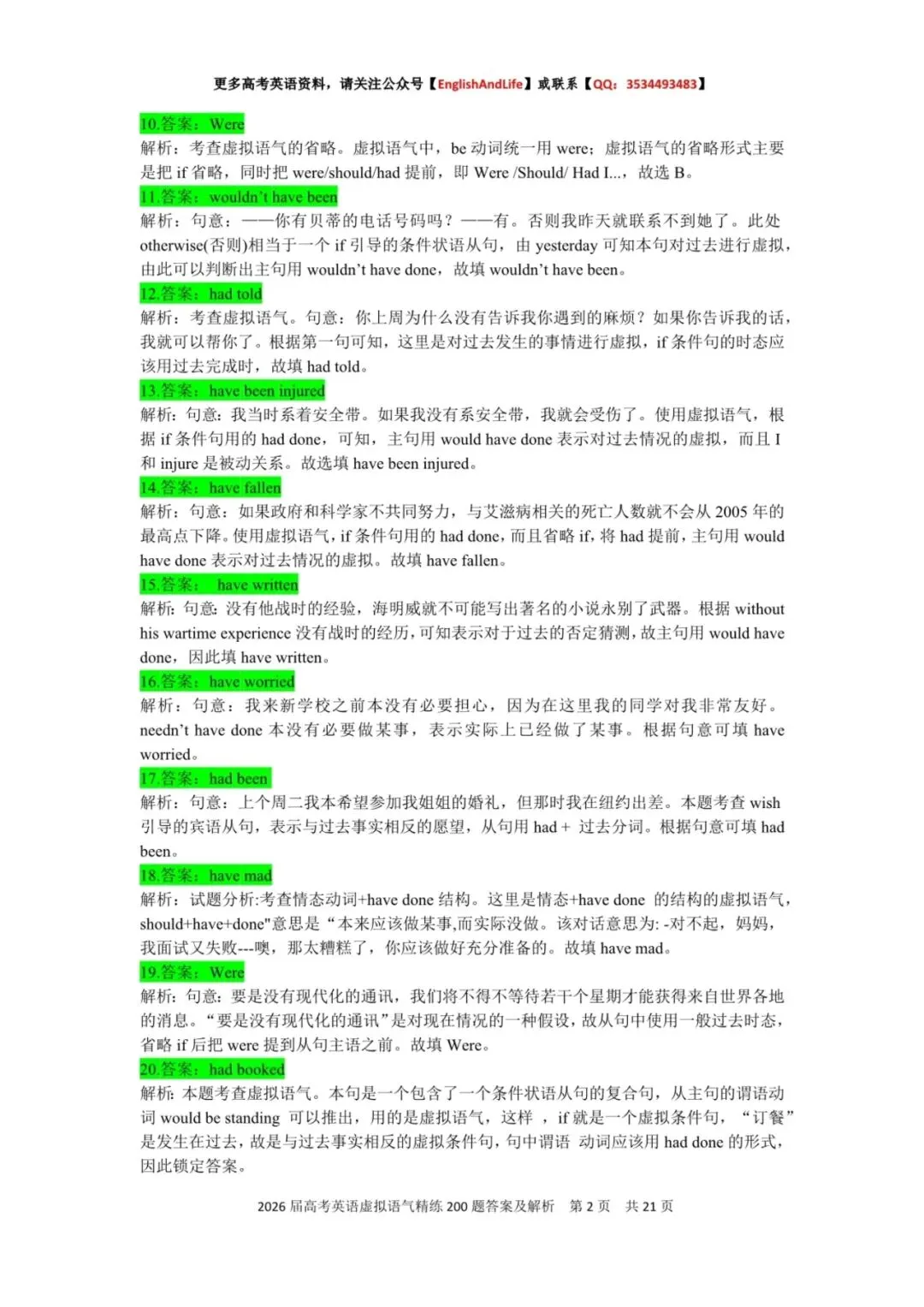 2026届高三一轮复习之虚拟语气精练200题(含答案+解析)部分内容截图如下