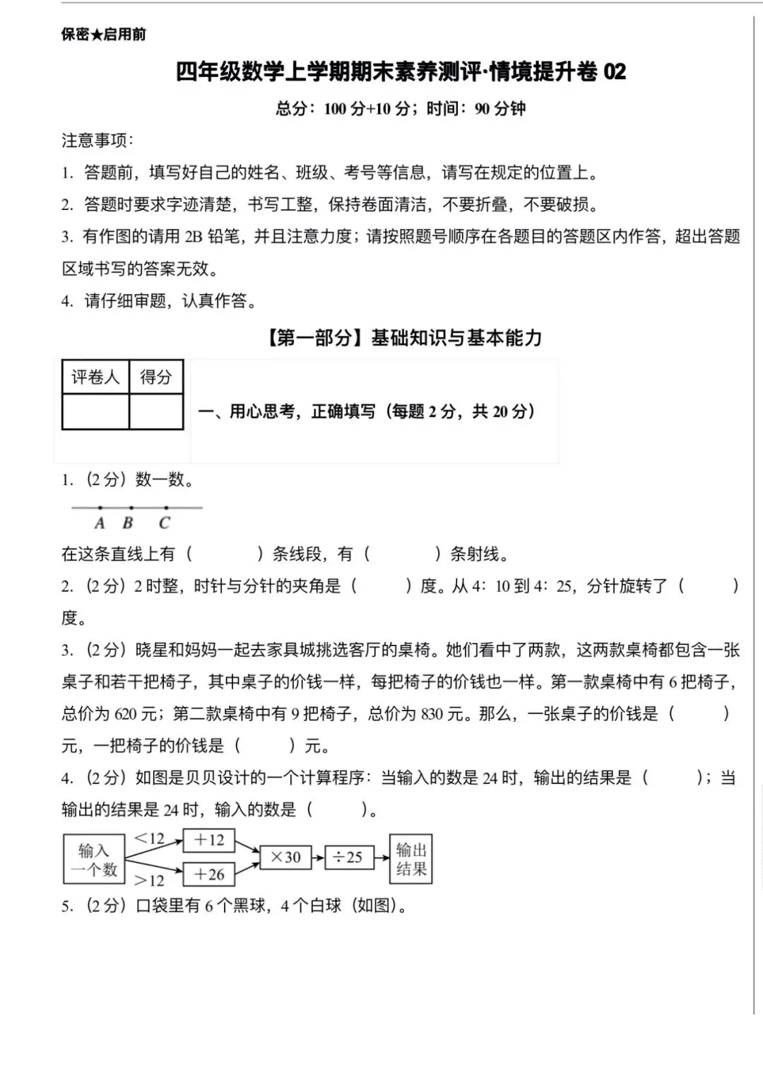 苏教版四年级上册期末素养卷4.docx