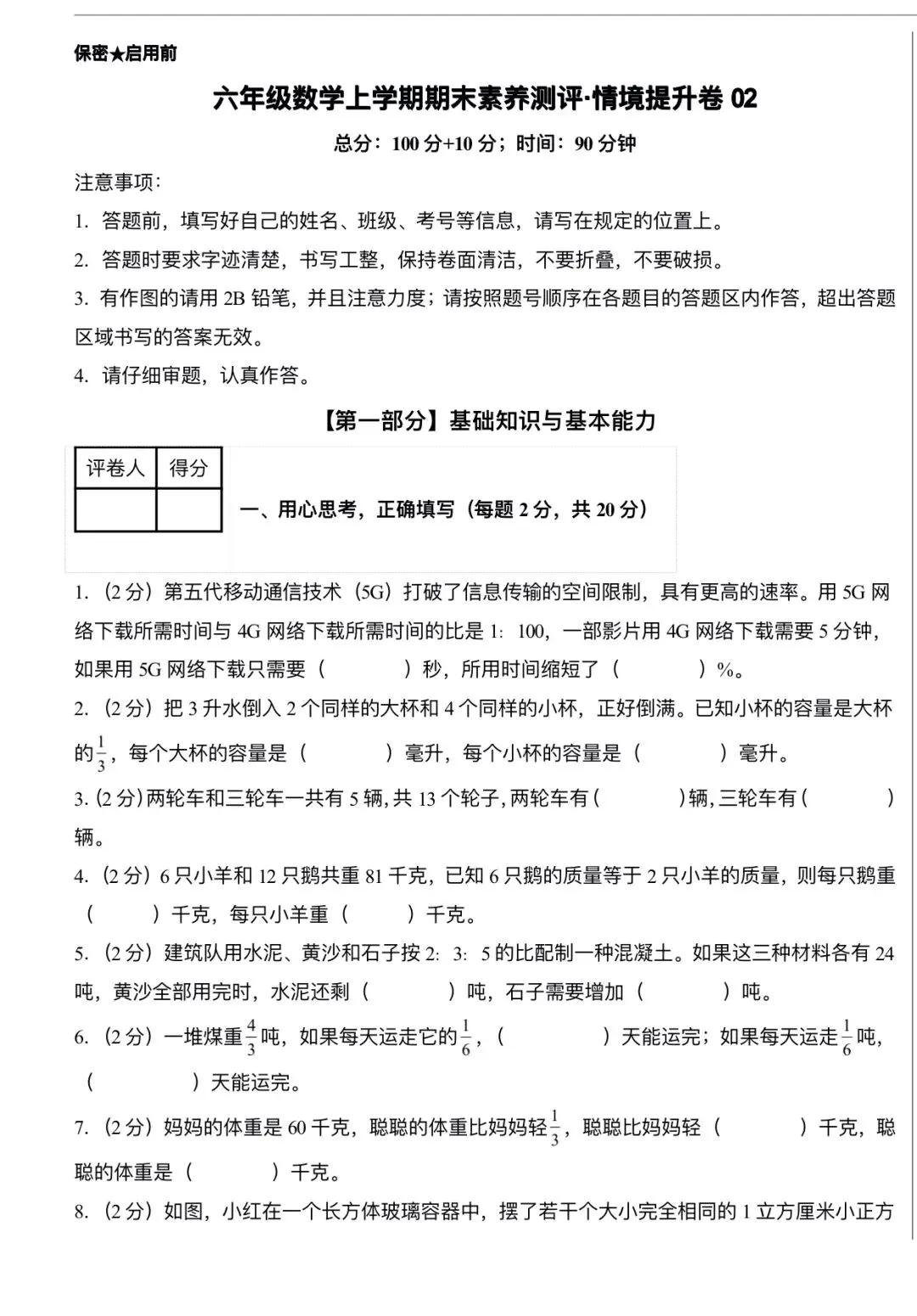 1. 数与代数:分数/百分数/比的应用、分数四则运算、解方程、鸡兔同笼/工程问题