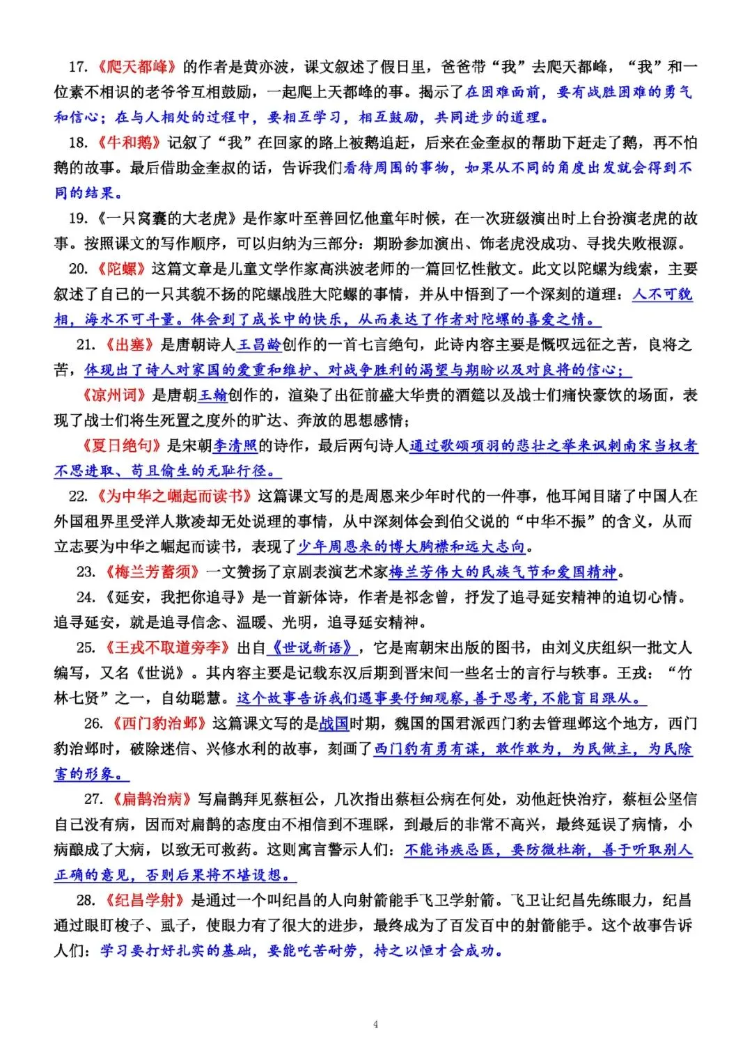 之前教四年级时,花了很多天的时间整理的四上语文复习资料, 有删减增改的地方没有改啦,给学生说,只要吃透这本就够了。