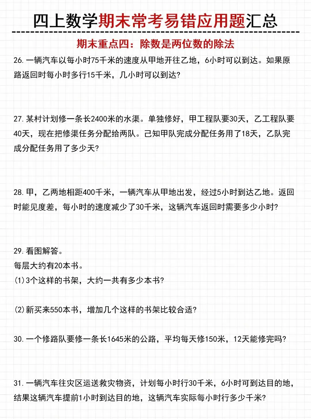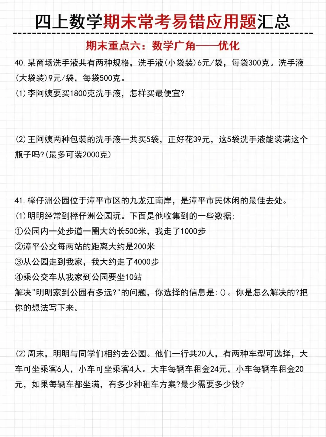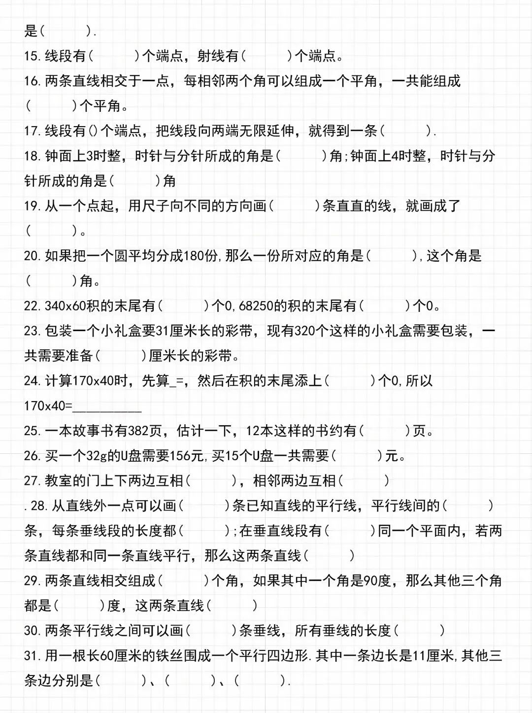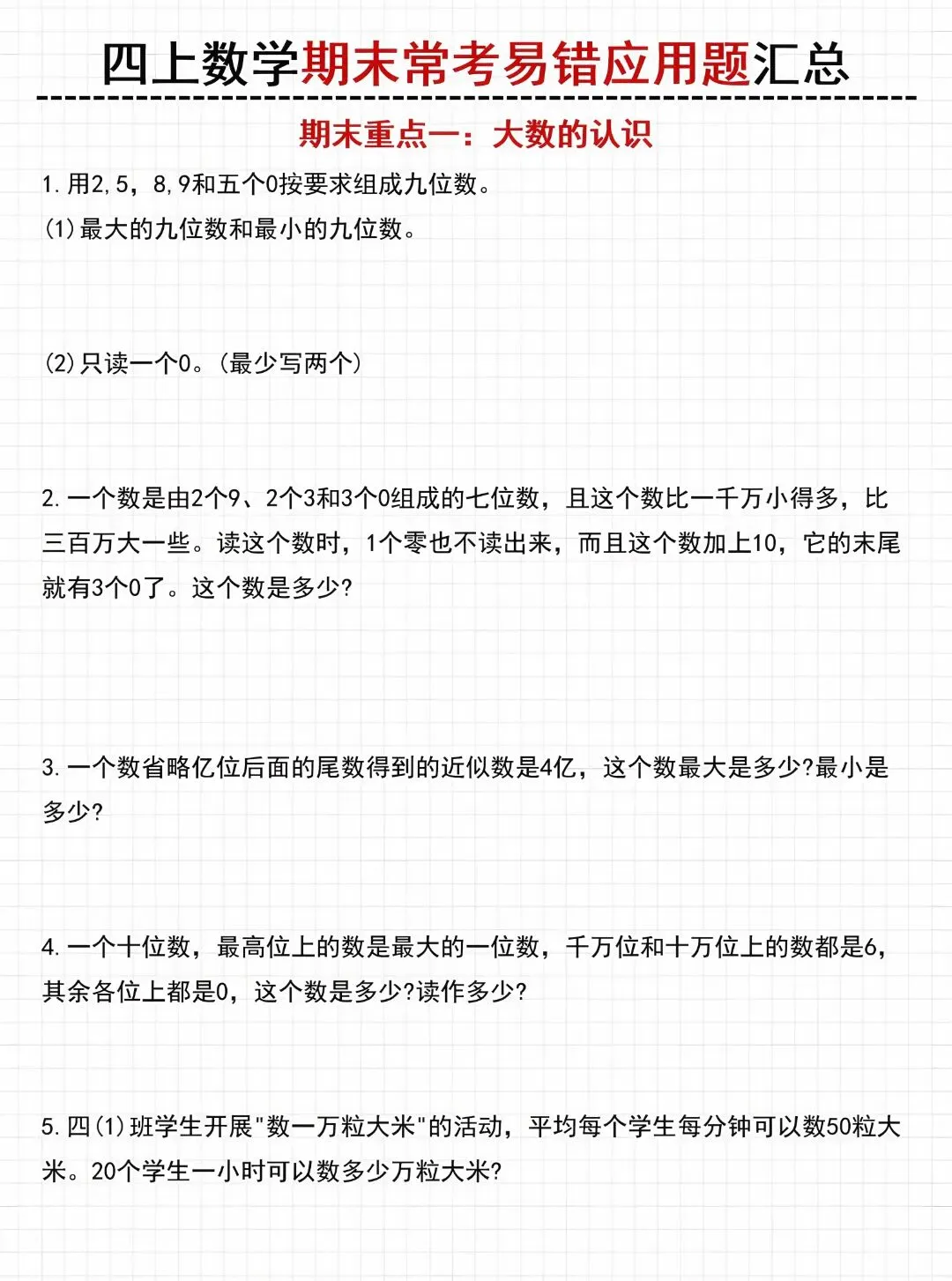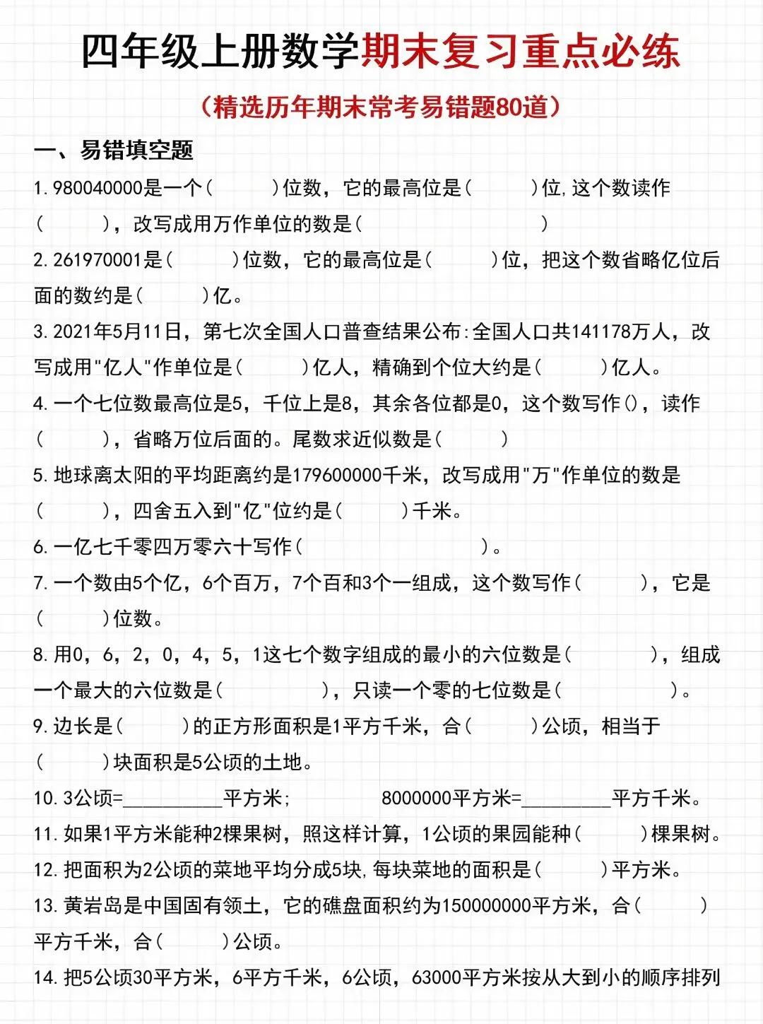 当前位置:首页>复习资料>四年级上册数学期末复习重点必练!