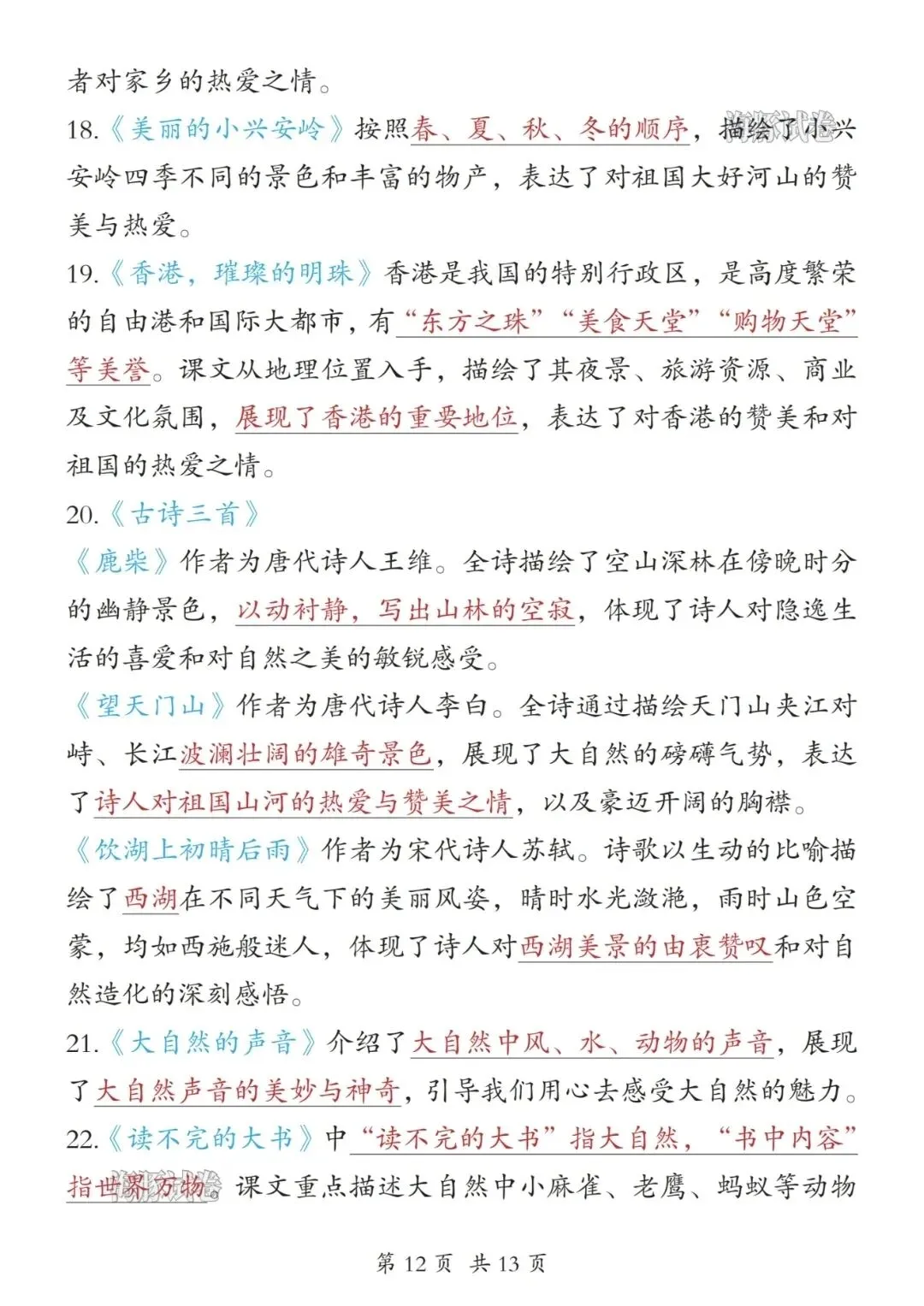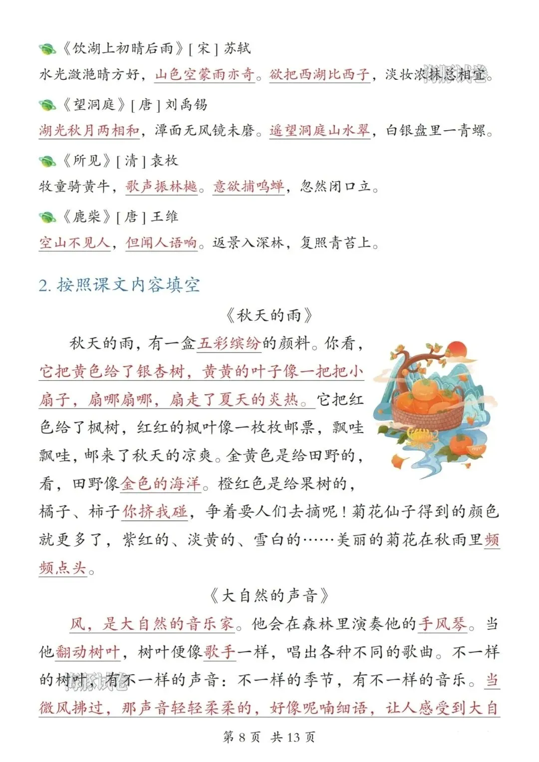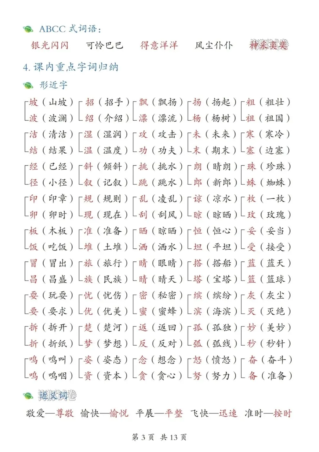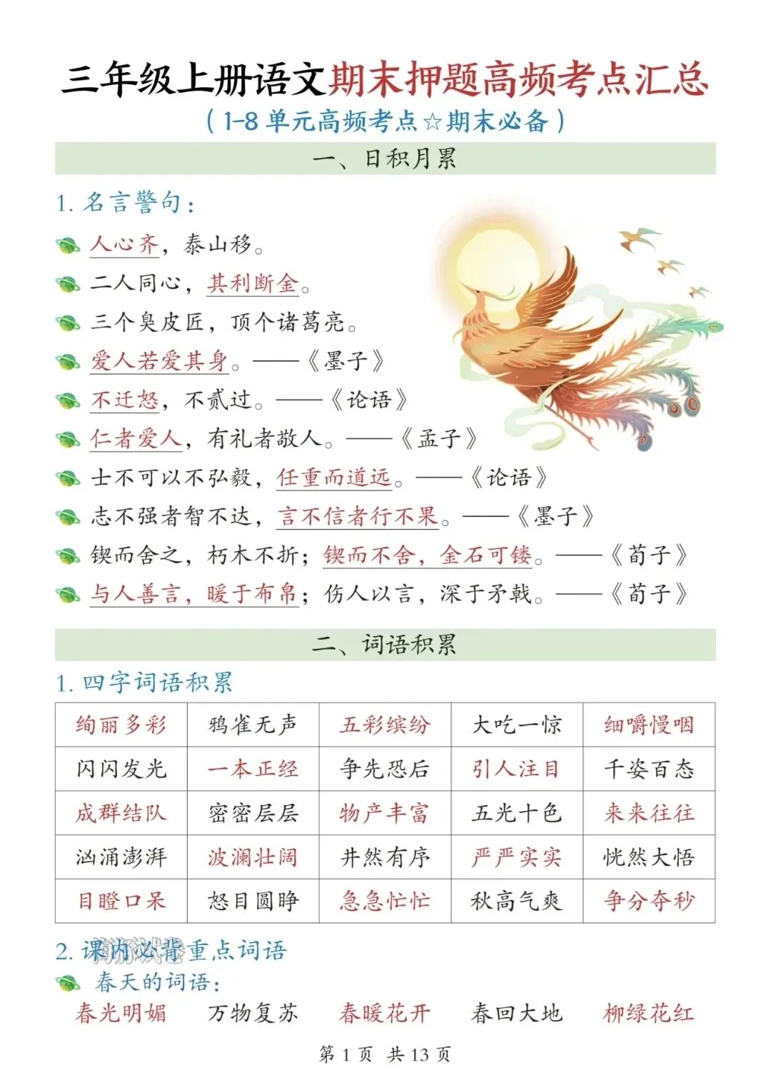 期末复习:三上语文《期末押题高频考点汇总》,必读必备资料