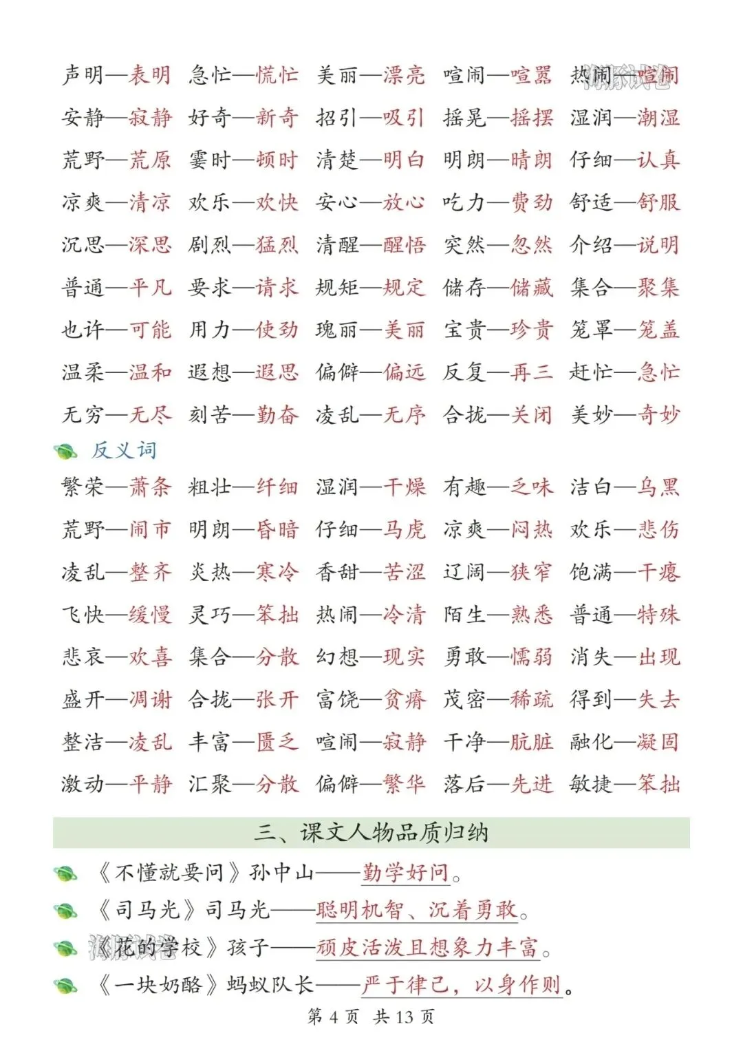 2025年秋四年级上册语文 期末复习重点知识点(必背)(共16页),高清电子版可下载