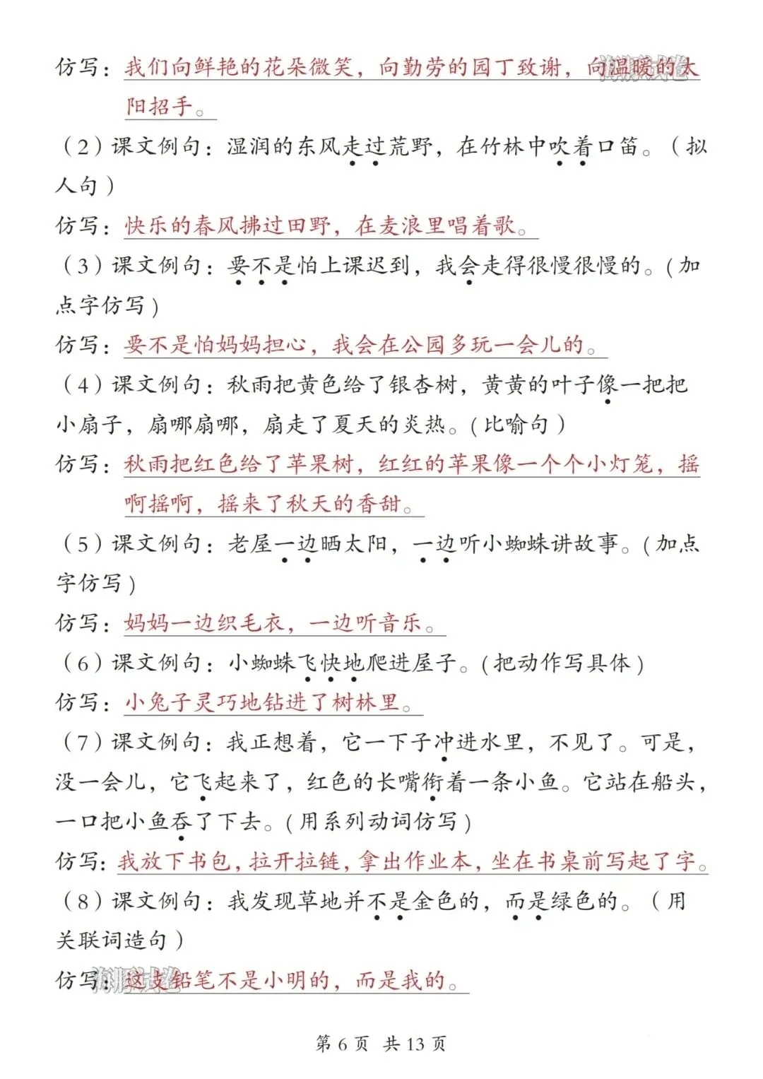 六年级上册语文期末复习重点句子训练,有答案, 必考题型练习