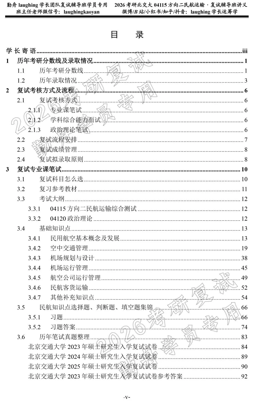 26考研北交复试04115方向二民航运输复试辅导课程试听及资料目录
