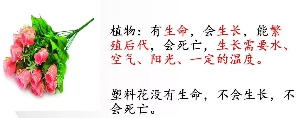 区分植物与非植物:植物是有生命的,能够生长、发育、繁殖,并且需要水、阳光、空气和土壤等。而塑料花等非植物制品,虽然看起来像植物,但它们没有生命特征,不能生长、发育和繁殖。