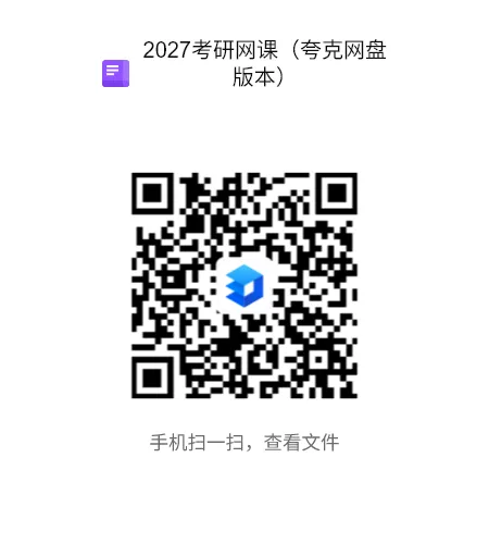 扫二维码保存获取,(更新也在二维码里面更新)不是试看两分钟,要保存才能看。由于链接容易失效,如果失效:后台发送:27考研网课-更新中