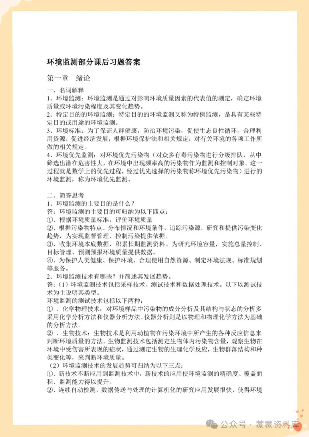 大家好!本期分享的是《环境监测》复习资料,资料有以下4个文档!