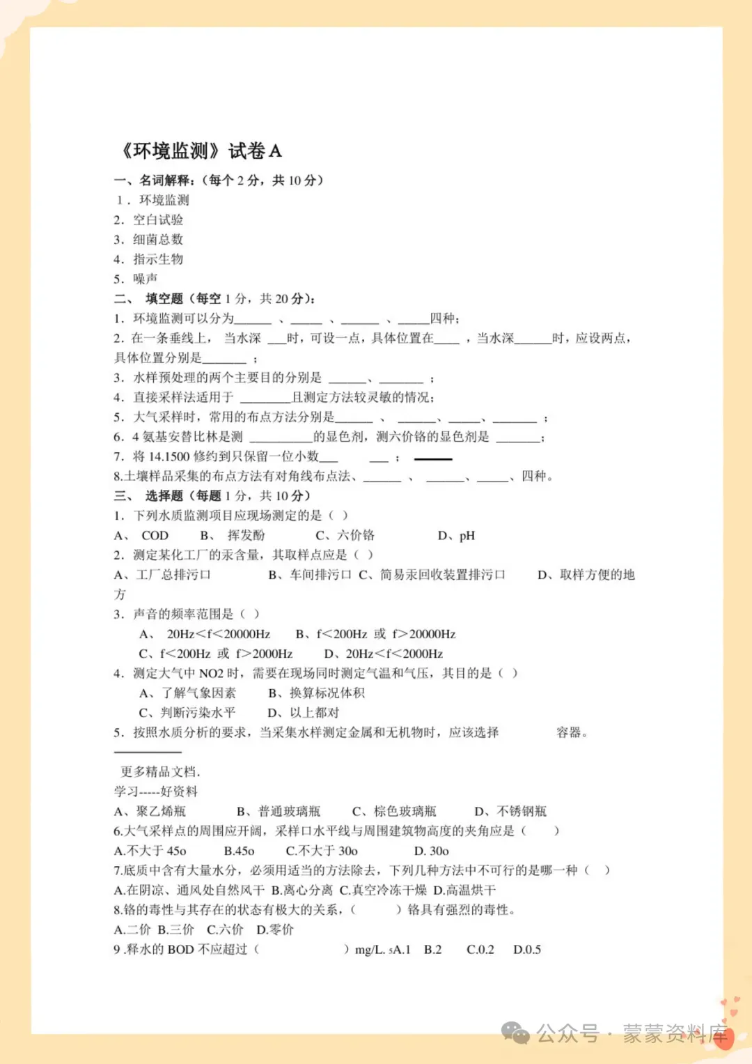 以上就是本次分享的《环境监测》复习资料。