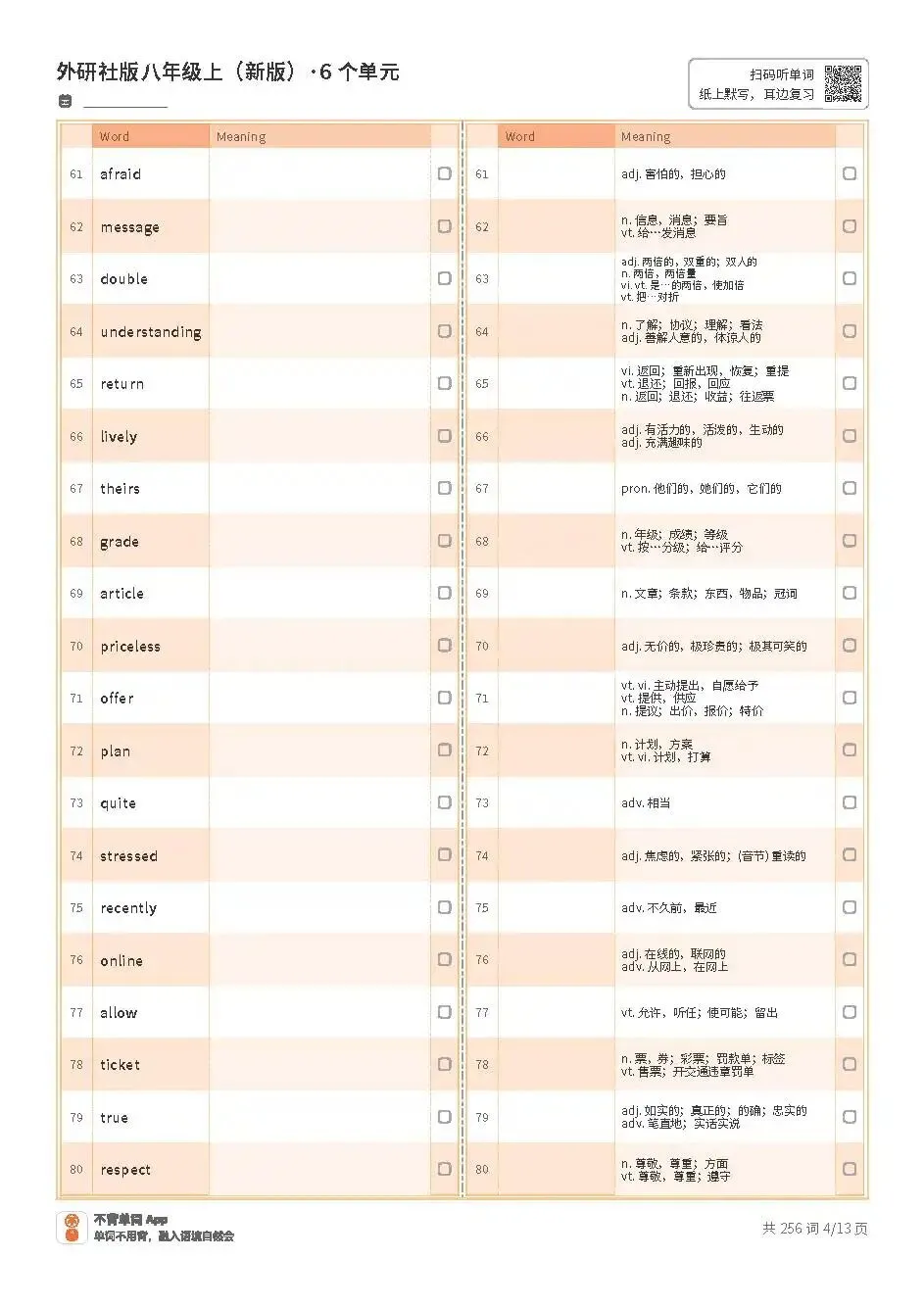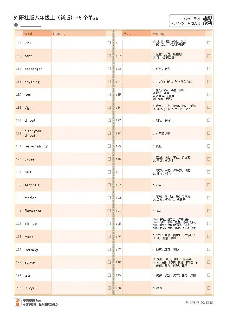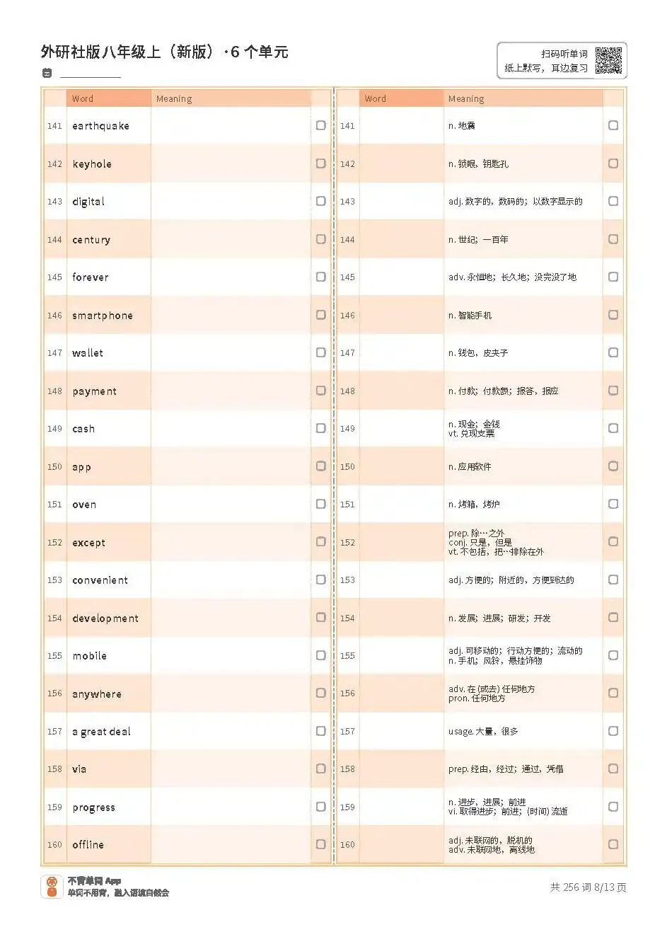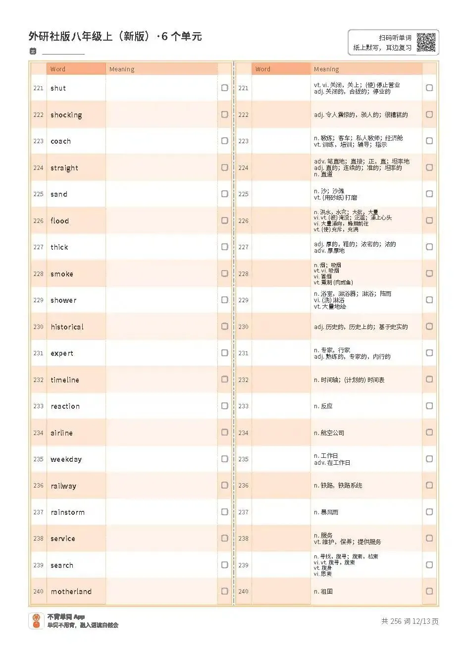 又到期末啦!八上的同学们以及家长请收好这份新外研八上完整单词表~😊