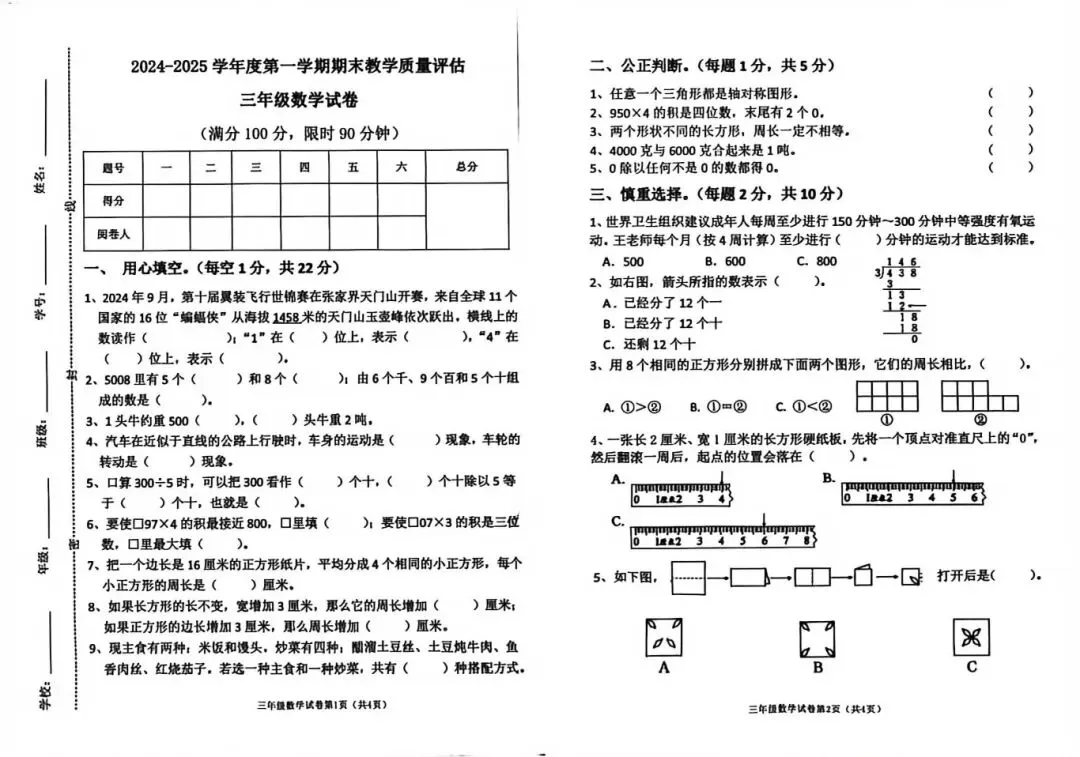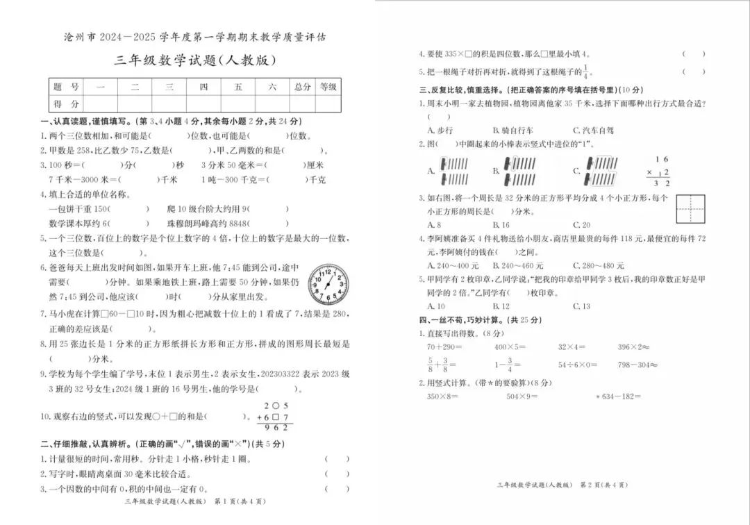 我们工作室倾心整理了2024—2025学年人教版、冀教版3—6年级上册数学期末素养测试卷,(注:三年级为新版教材,去年试卷可选择性参考)特此分享给各位小学数学同仁,愿为大家的期末复习工作提供实用参考!