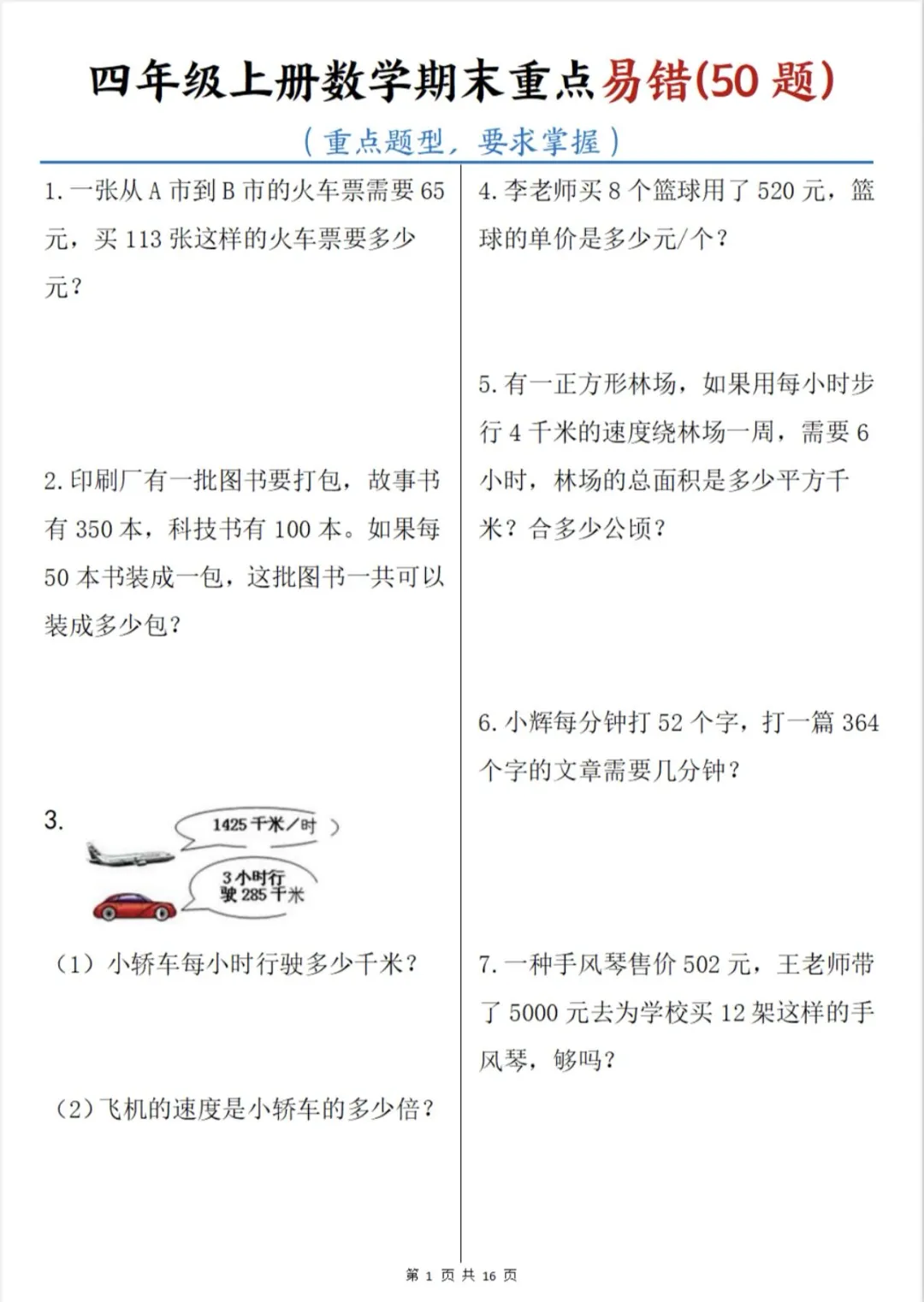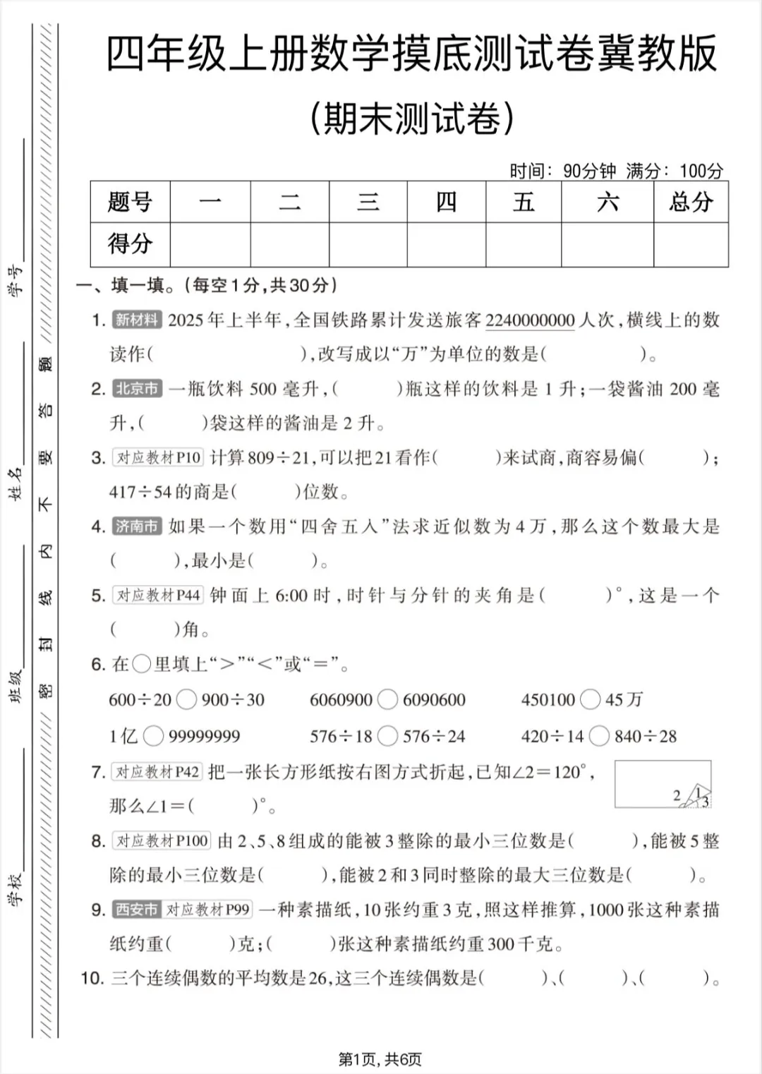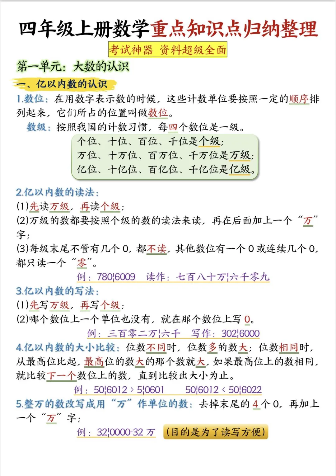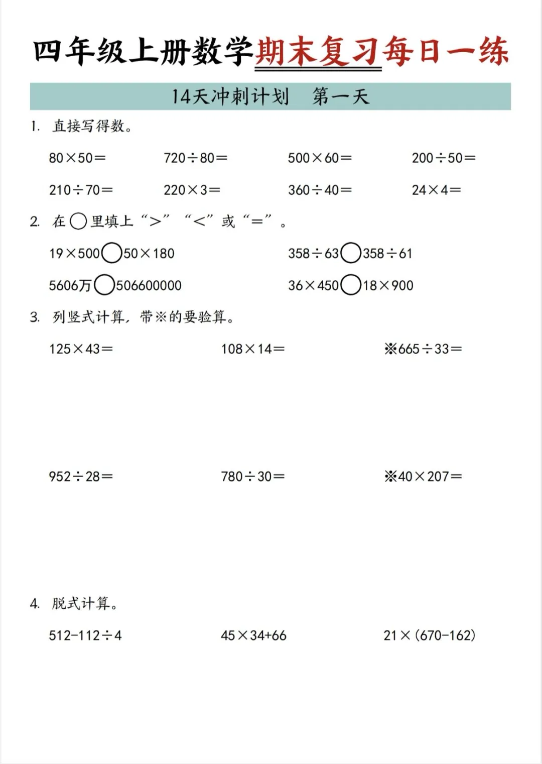 >【小学资料】25秋四年级上册数学再冲刺一把《期末总复习查漏补缺》来啦