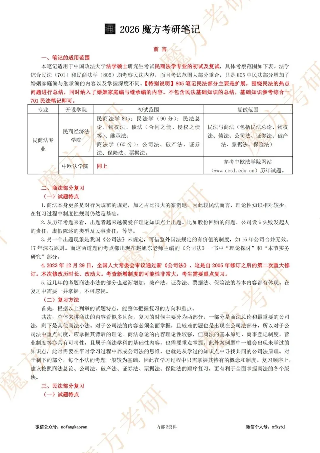 民法部分,结合李永军主编的《民法学教程(第二版)》(2023出版),对婚姻家庭法、继承法的基础知识点进行了总结。重点结合了新出台的《婚姻家庭编司法解释(二)》的相关规定。