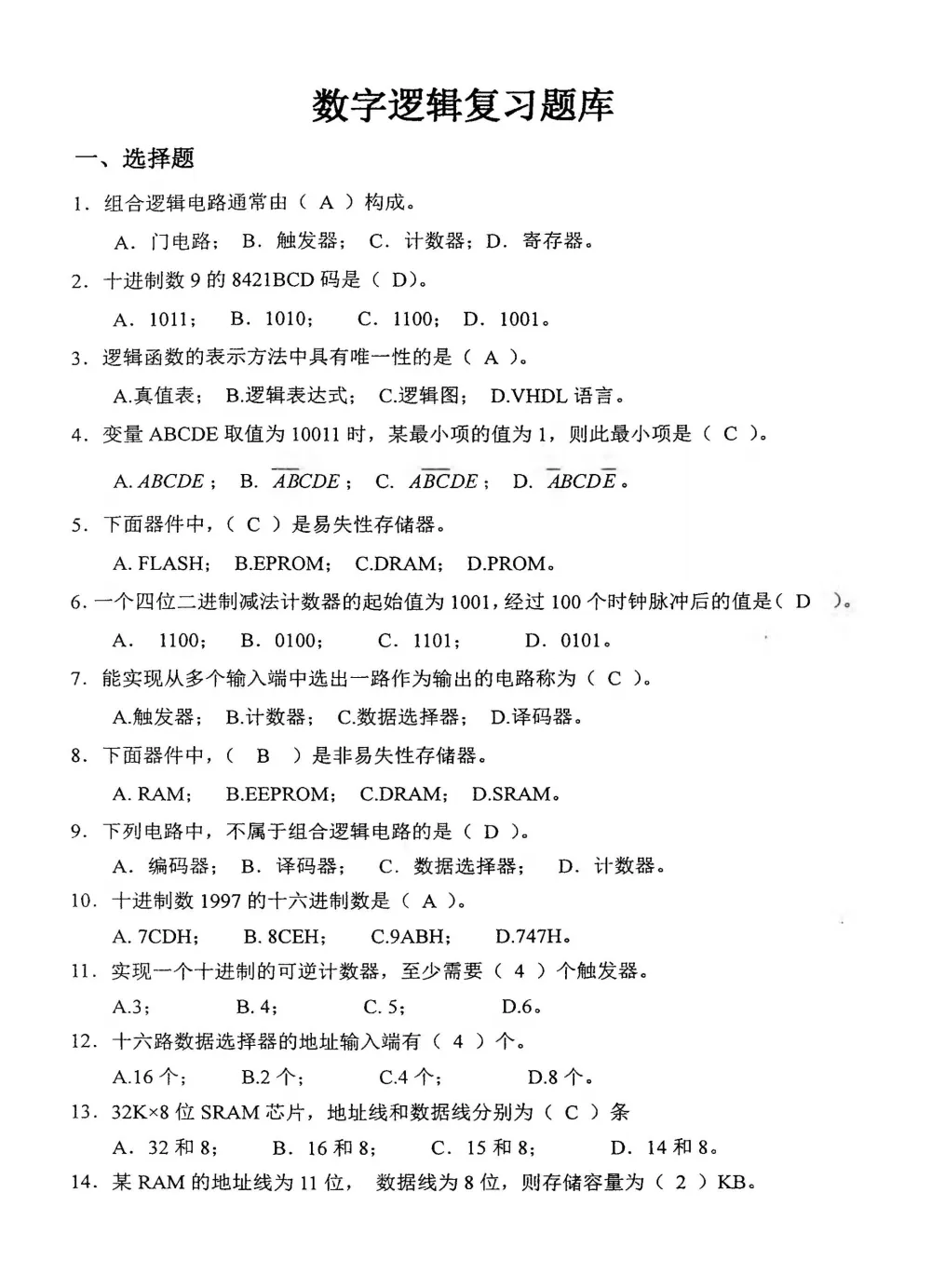 成电本校相关科目的期末试题及复习题库,属于内部资料,是很多笔试真题的题目来源!