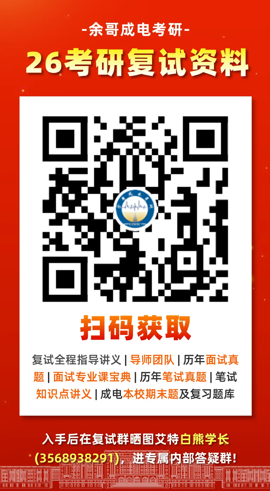 重磅上架!沉淀多年的复试干货资料来了~ 对应目标专业复试科目直接冲,有困惑可扫码咨询余哥团队学长学姐!
