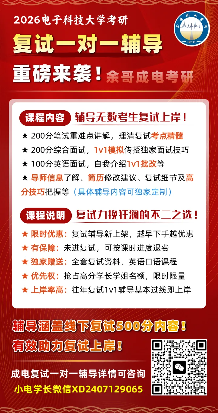 电子科技大学2026考研复试一对一辅导重磅来袭!详情可咨询小电学长微信:XD2407129065