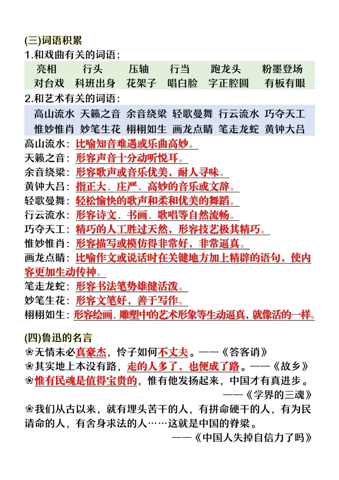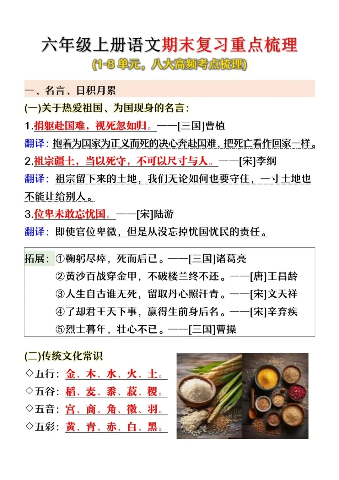 六年级上册语文期末复习重点梳理,给孩子最后冲刺!