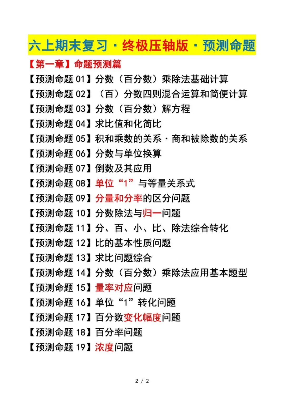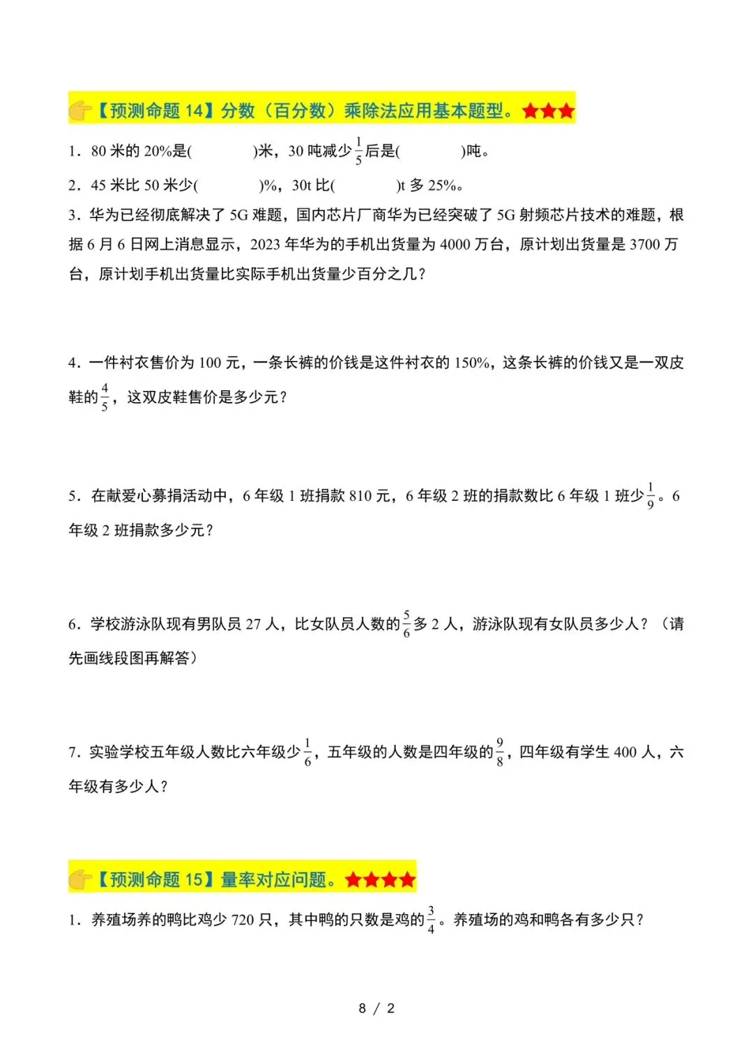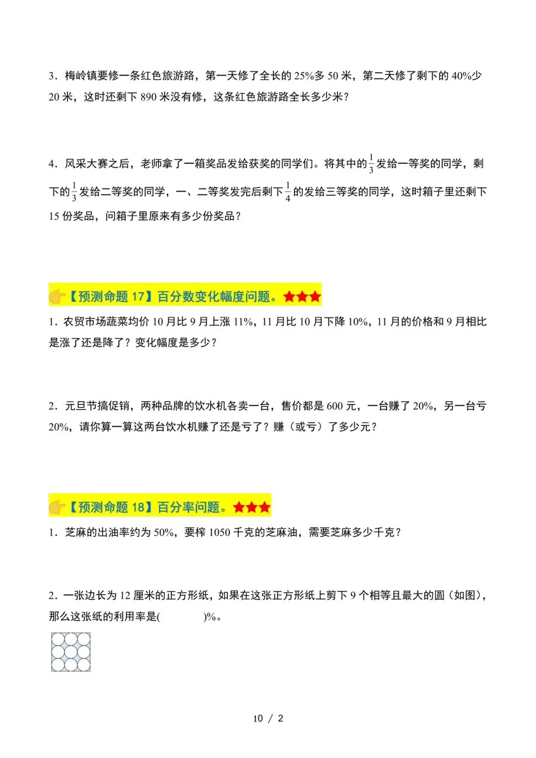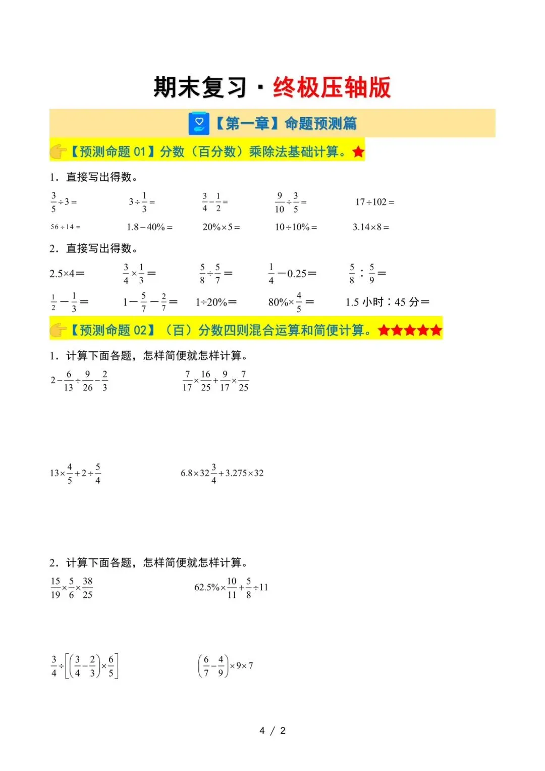>苏教版:六年级上册数学《期末复习·期末压轴练习》,期末考前复习资料!