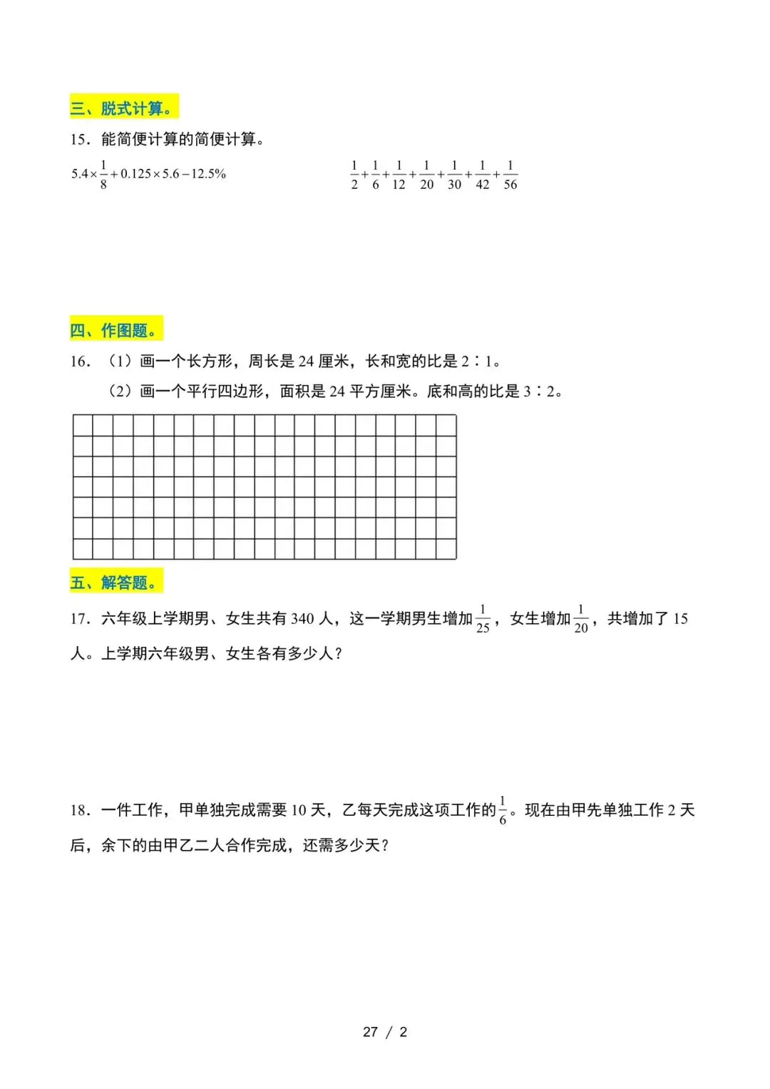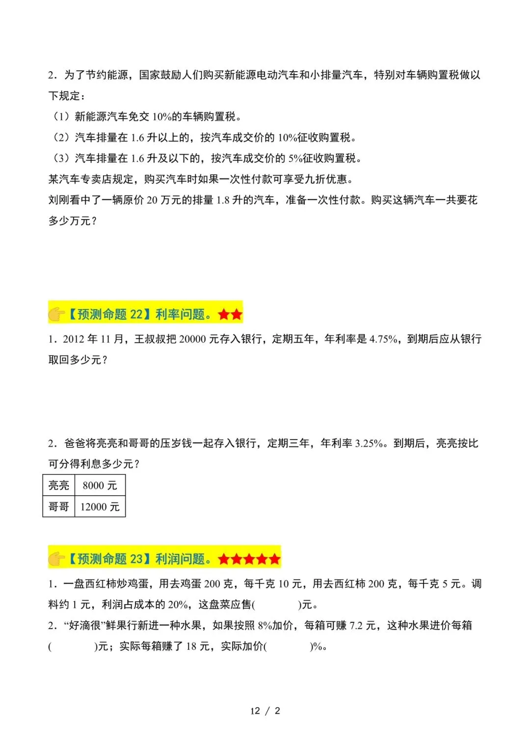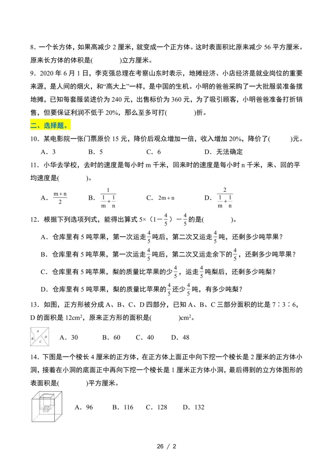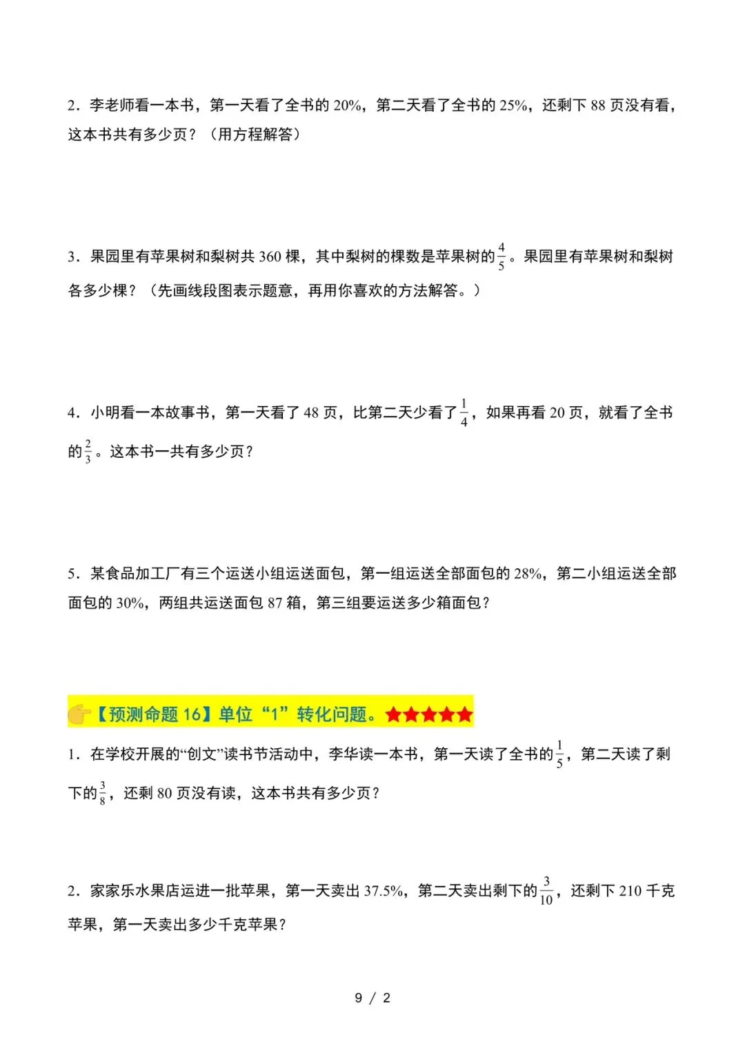 >苏教版:六年级上册数学《期末复习·期末压轴练习》,期末考前复习资料!