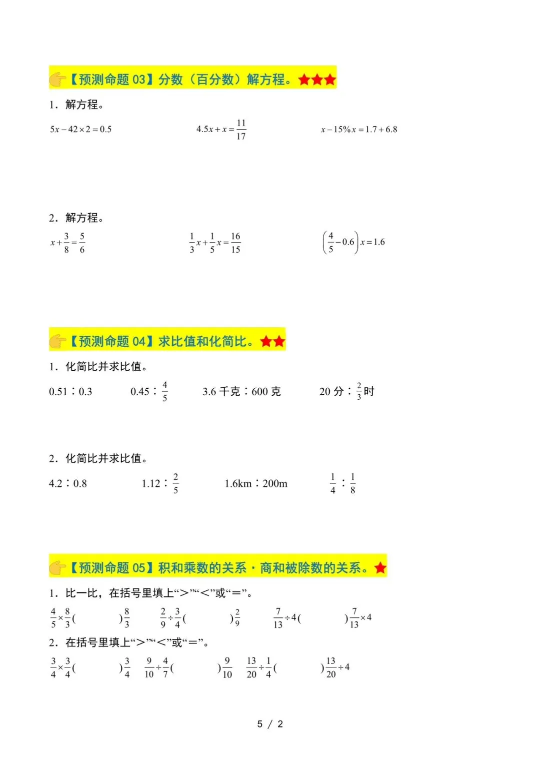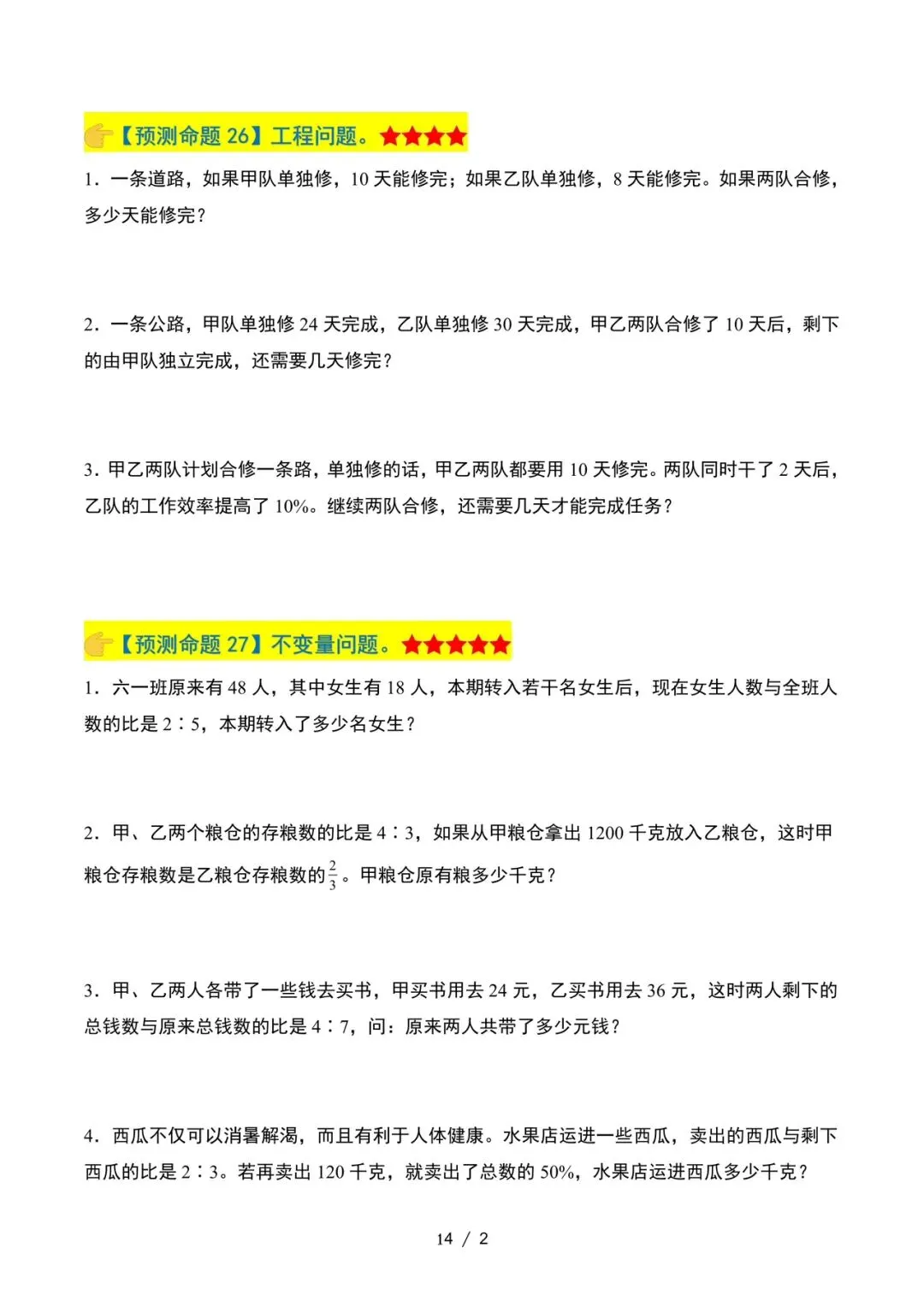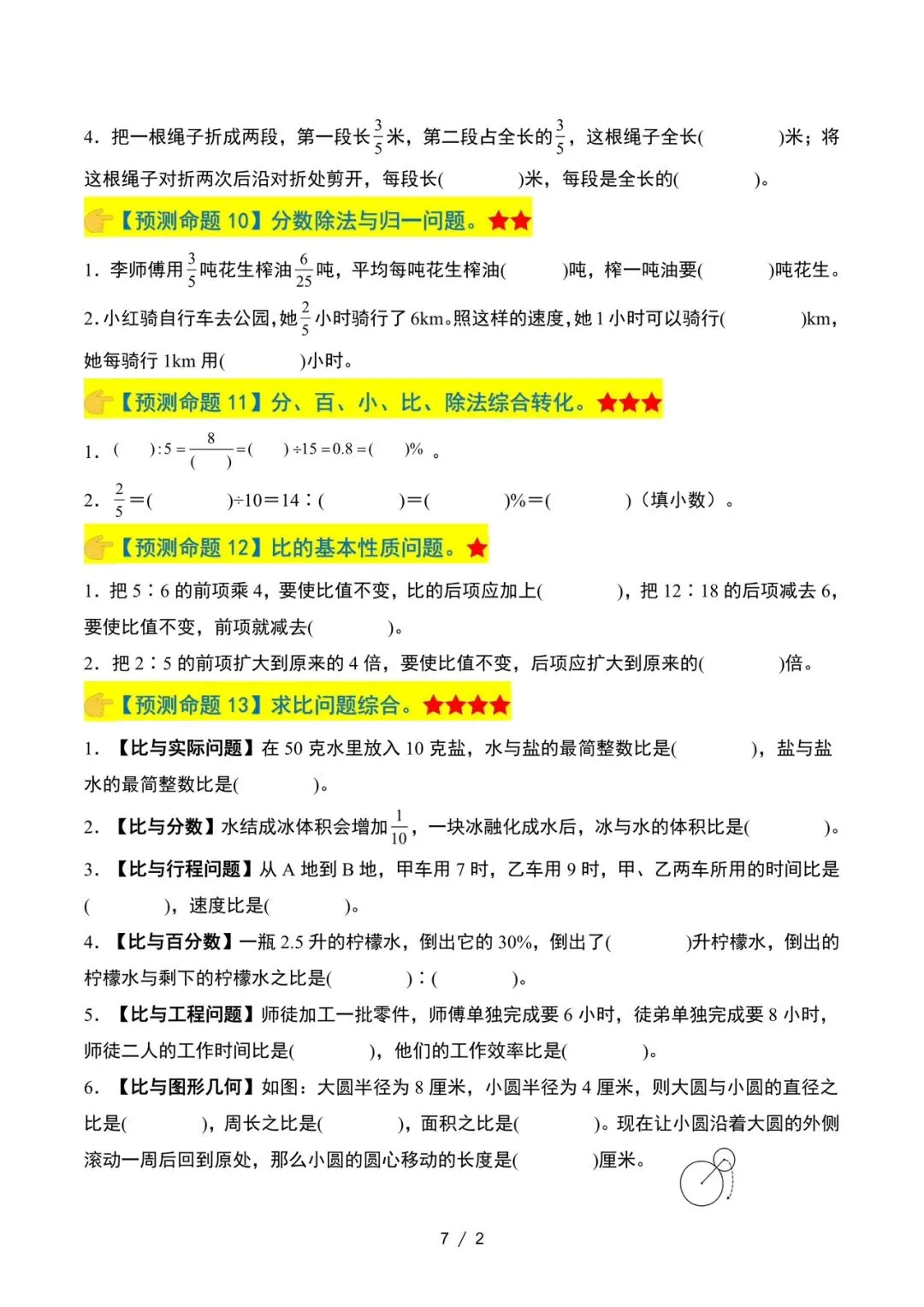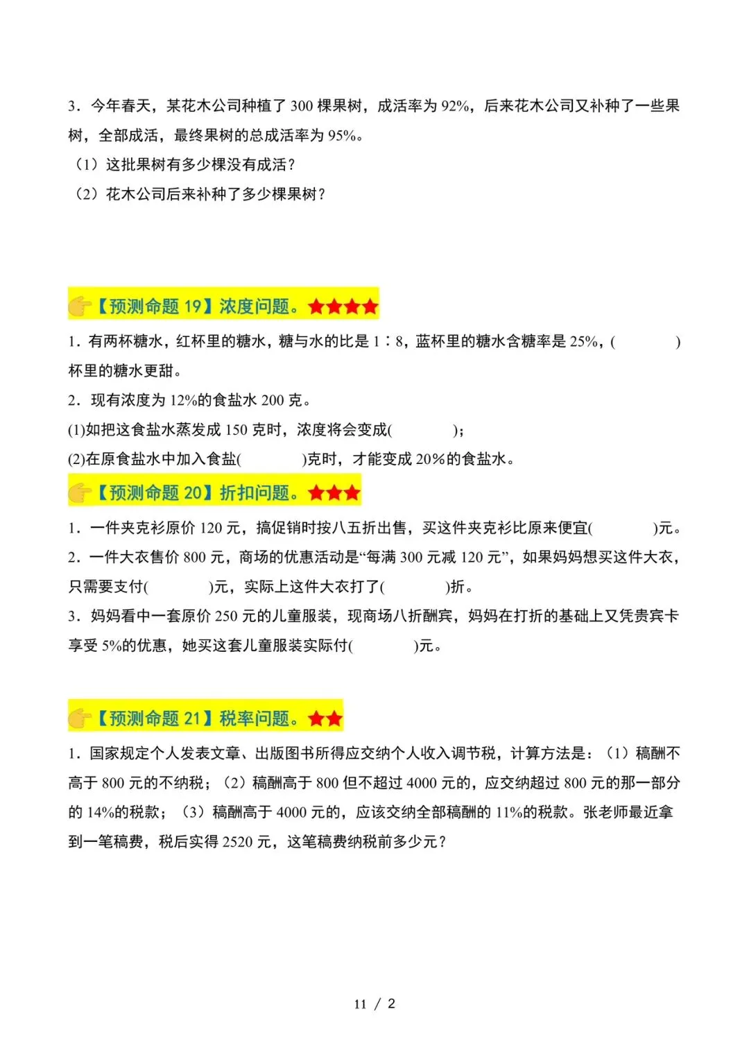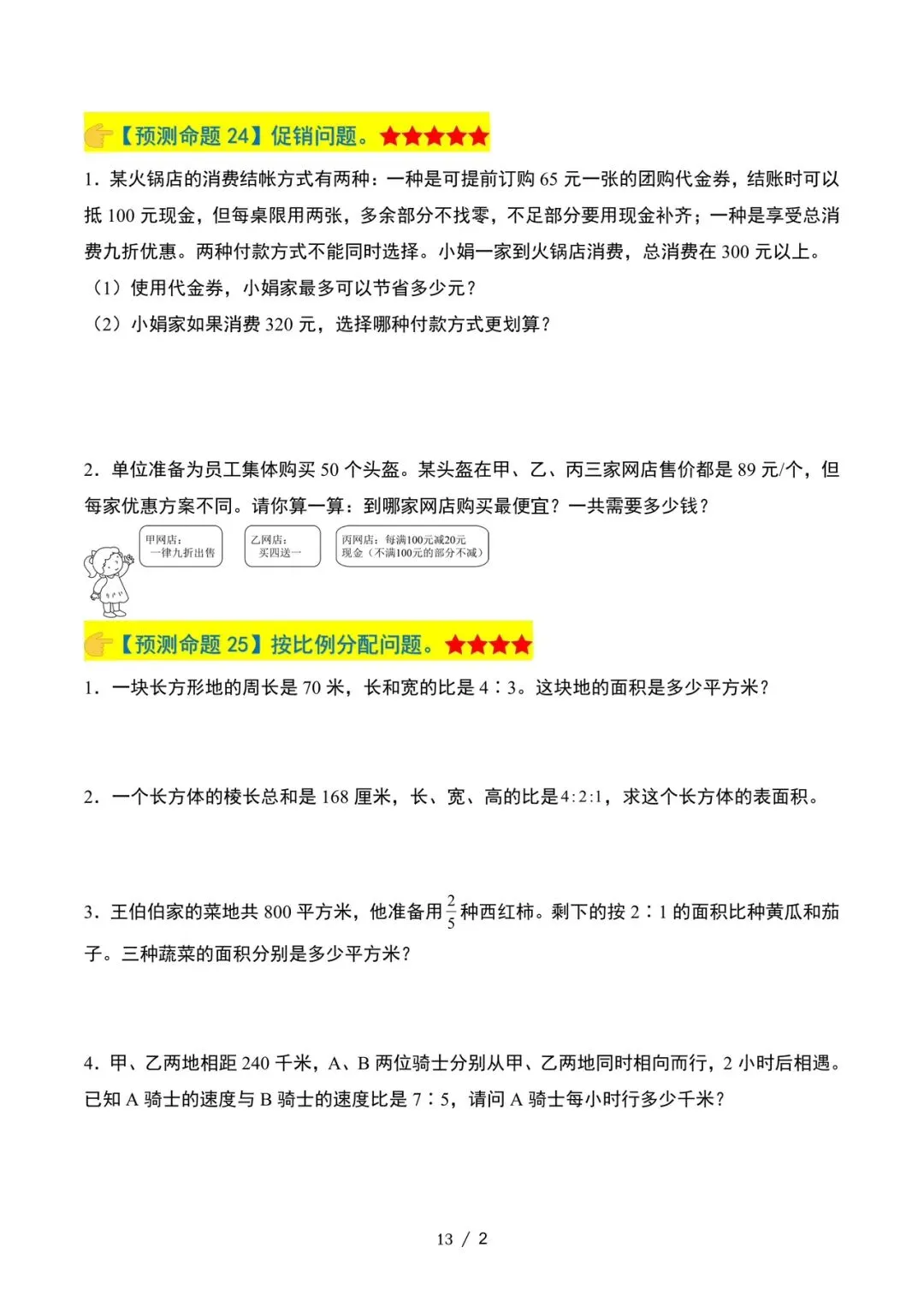 >苏教版:六年级上册数学《期末复习·期末压轴练习》,期末考前复习资料!