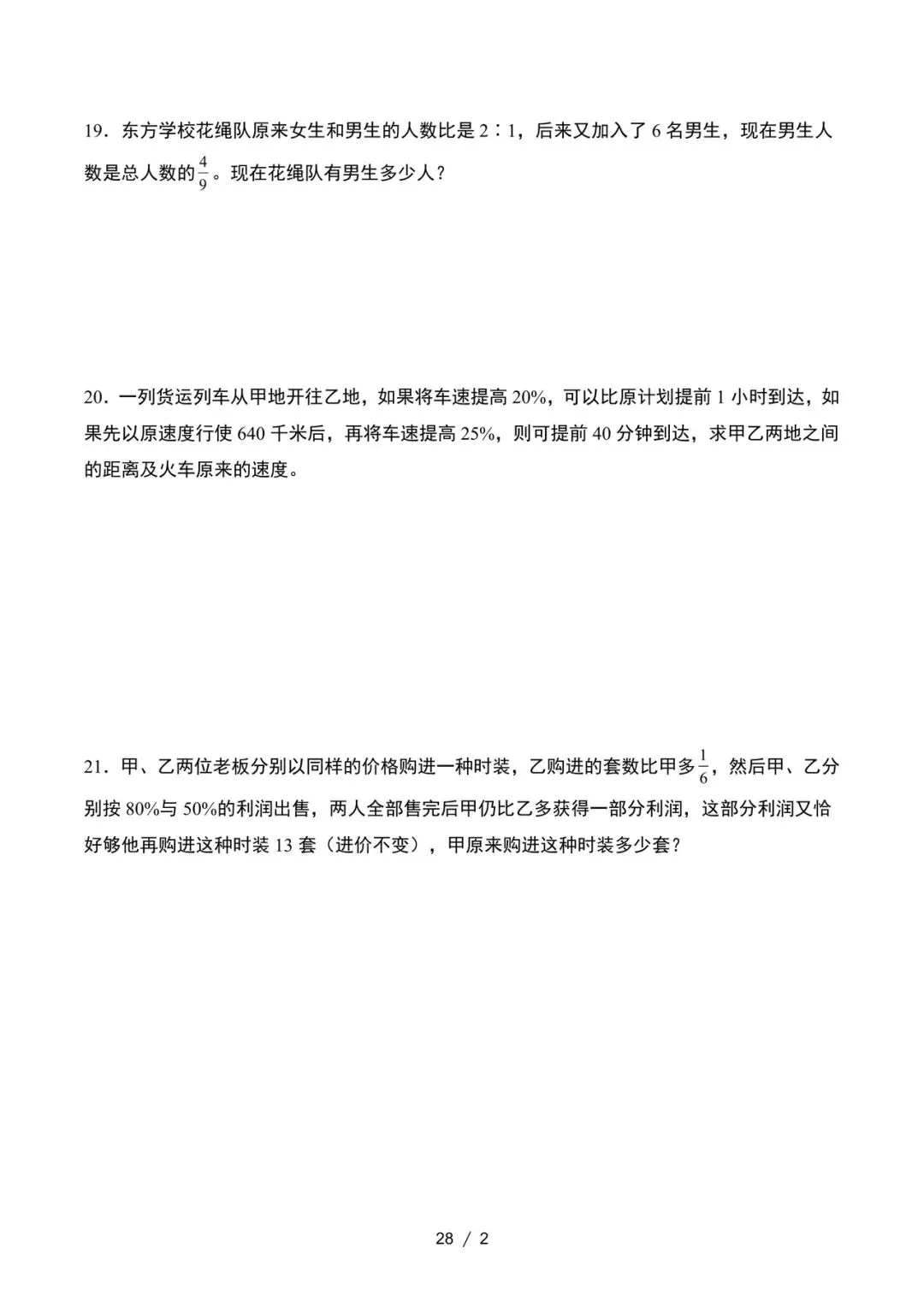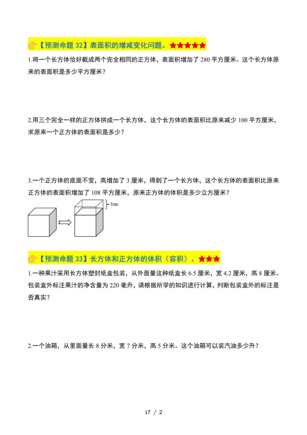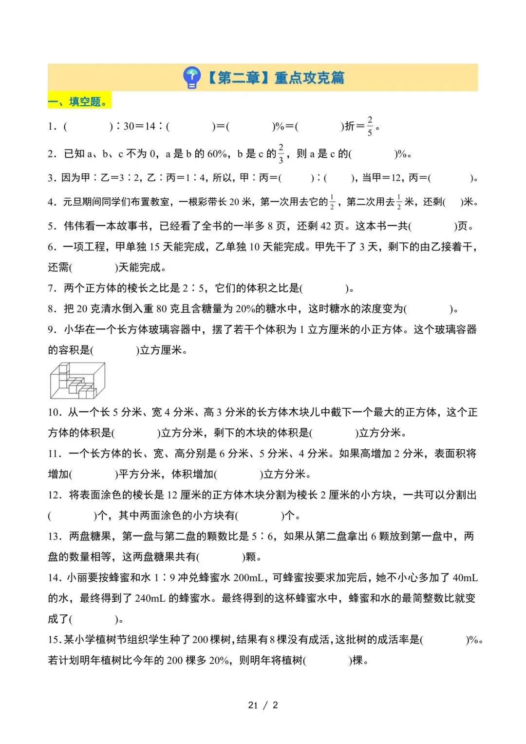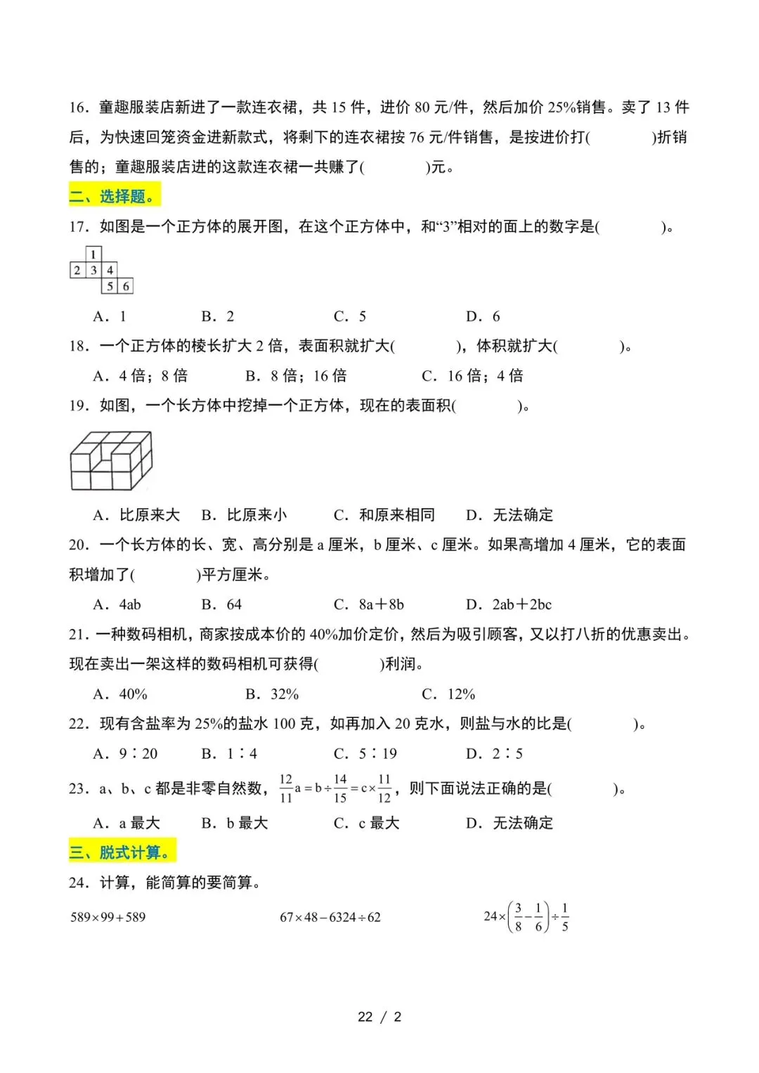 >苏教版:六年级上册数学《期末复习·期末压轴练习》,期末考前复习资料!