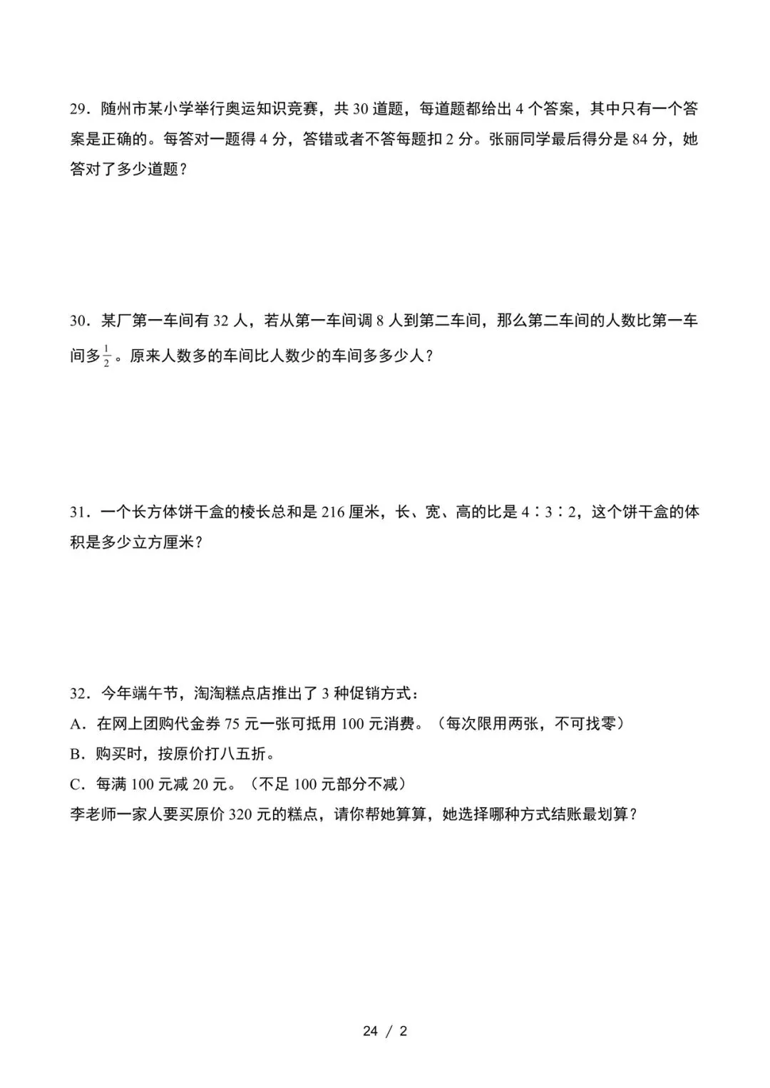 苏教版:六年级上册数学《期末复习·期末压轴练习》,期末考前复习资料!