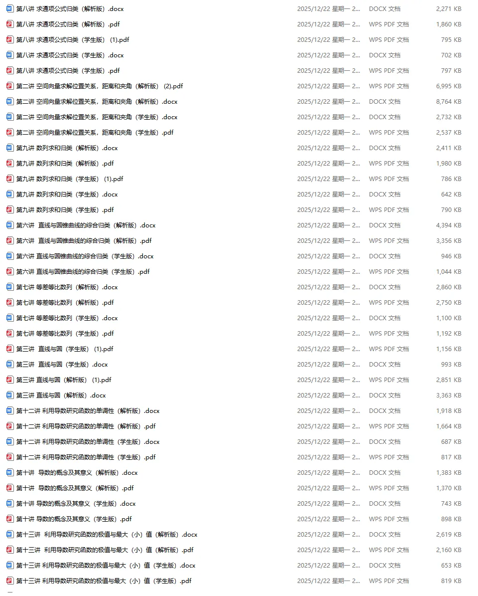 高中数学资料QQ群,包含高中数学资料(含公众号历史资料),入群费用99元,入群既享受永久更新,自己可随时下载,资料部分目录点击后台“数学资料”查看,如下图。