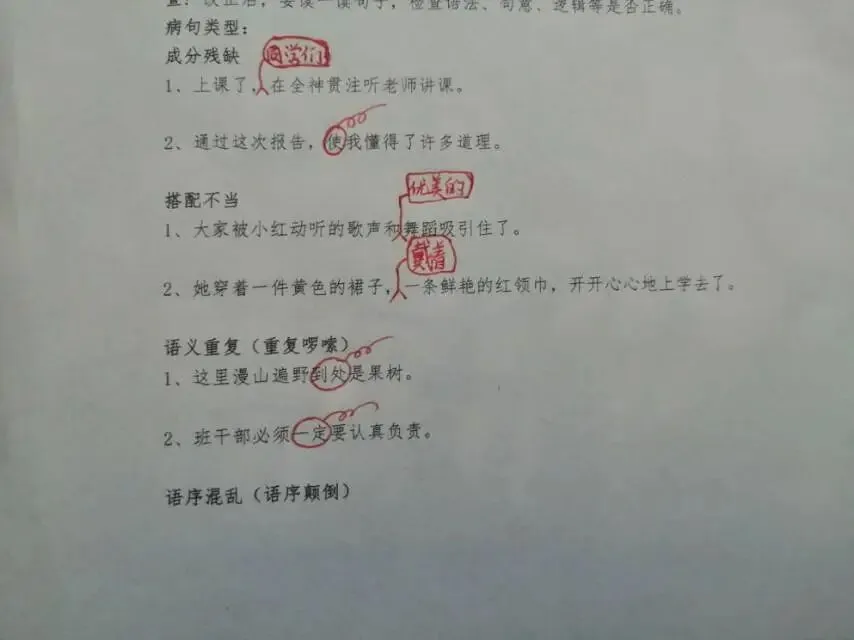 2、我们要认真克服并善于发现学习中的缺点。(语序混乱)