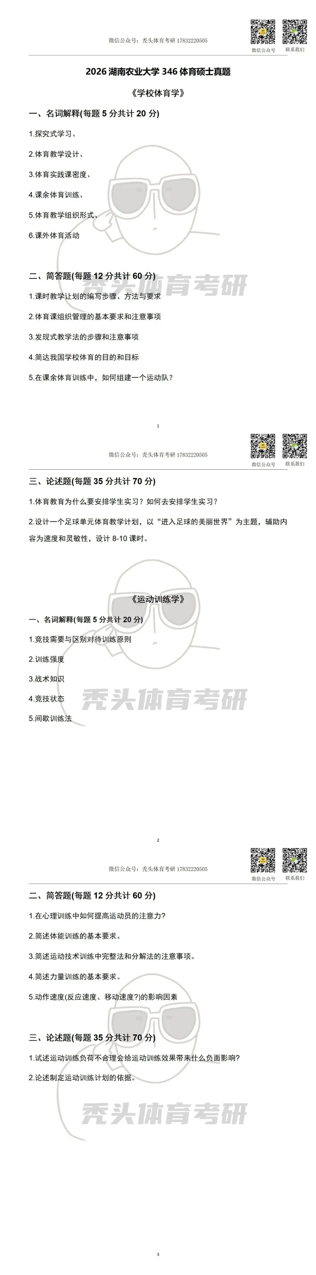 26体育考研院校资讯|初试仅2门!不考运动生理学!限制跨考!湖南农业大学招生目录/参考书/复试线/26真题/初试大纲/分数分析