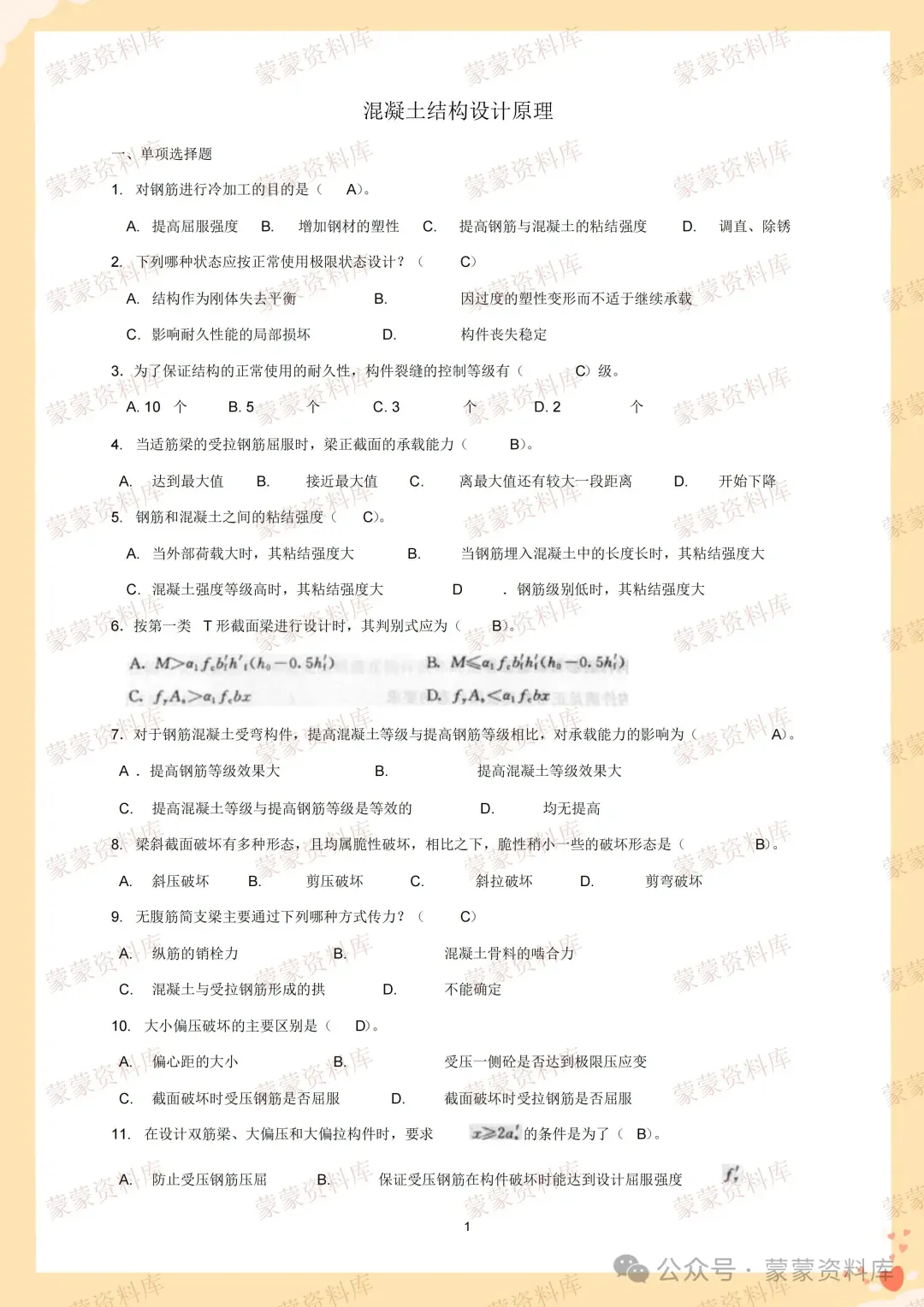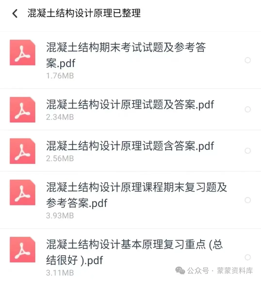 大家好!本期分享的是《混凝土结构设计原理》复习资料,资料有以下5个文档!