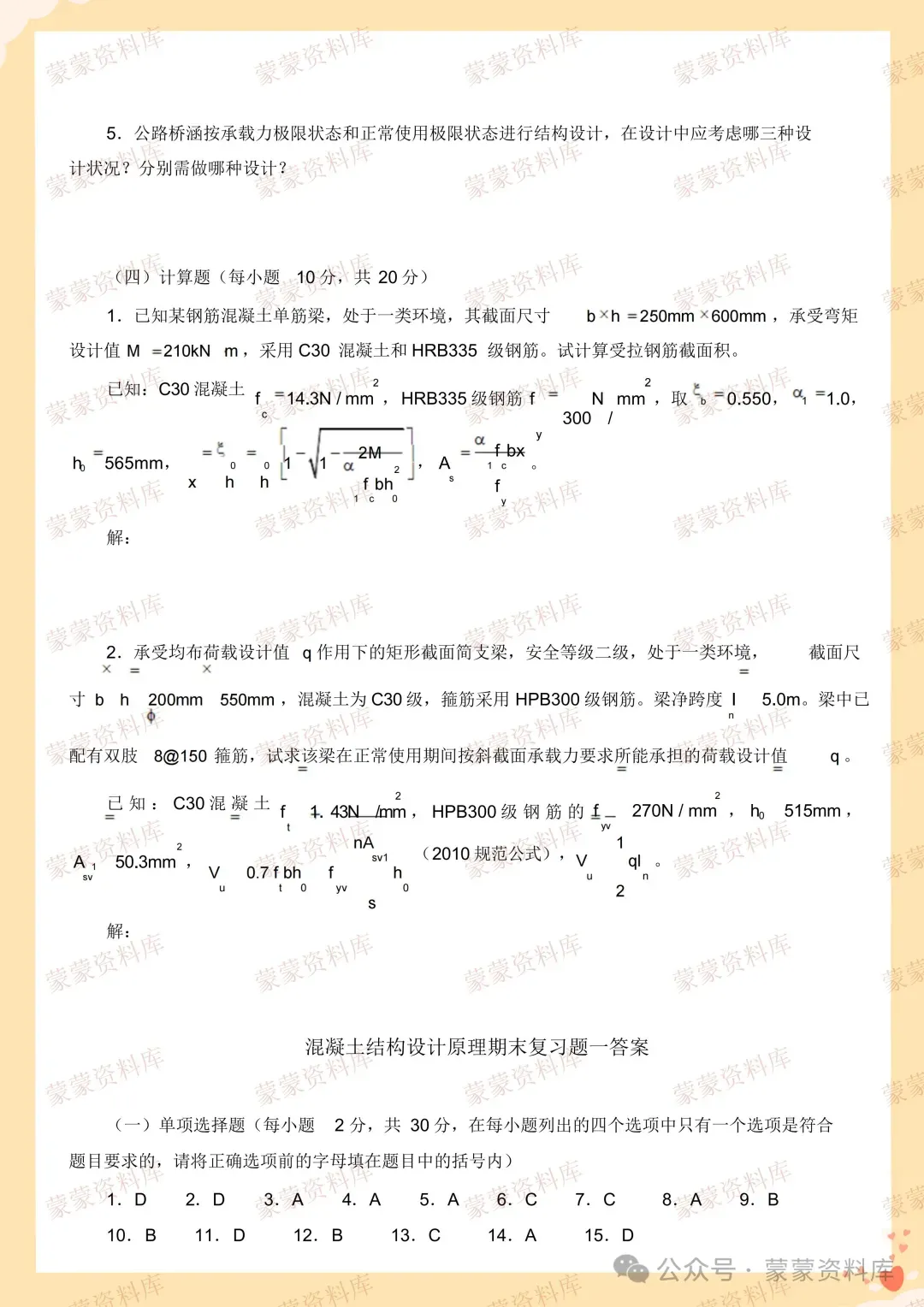 以上就是本次分享的《混凝土结构设计原理》复习资料。