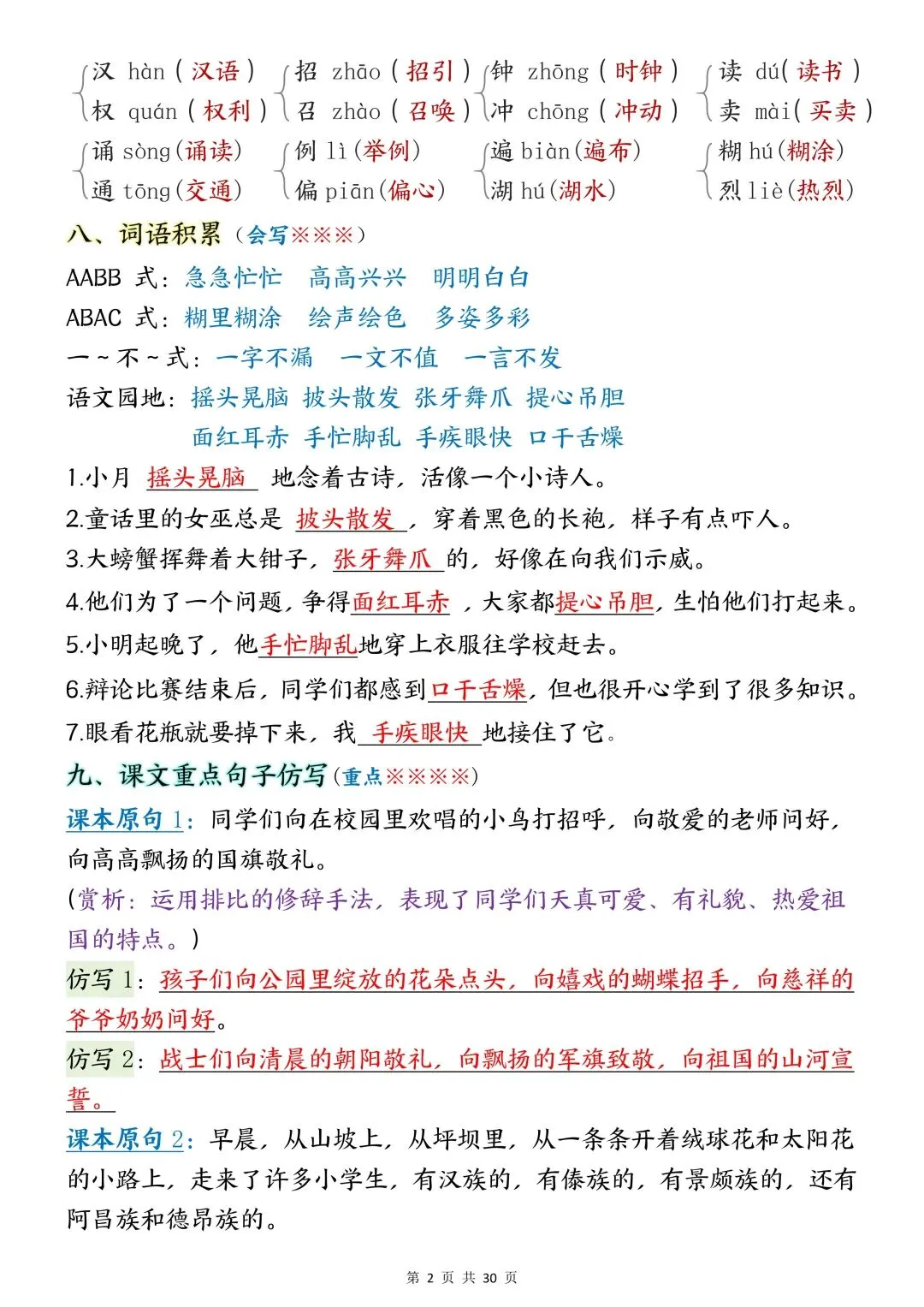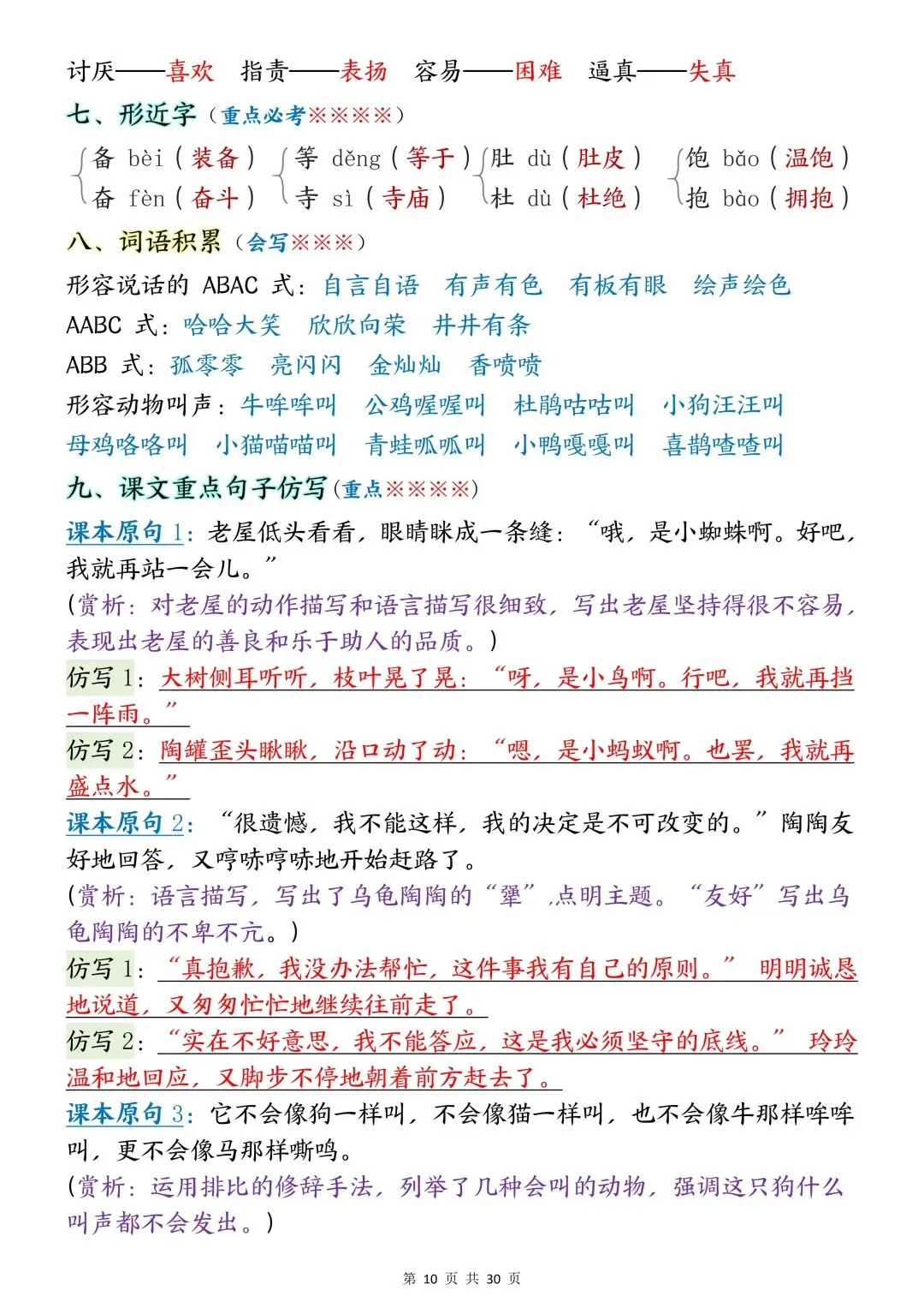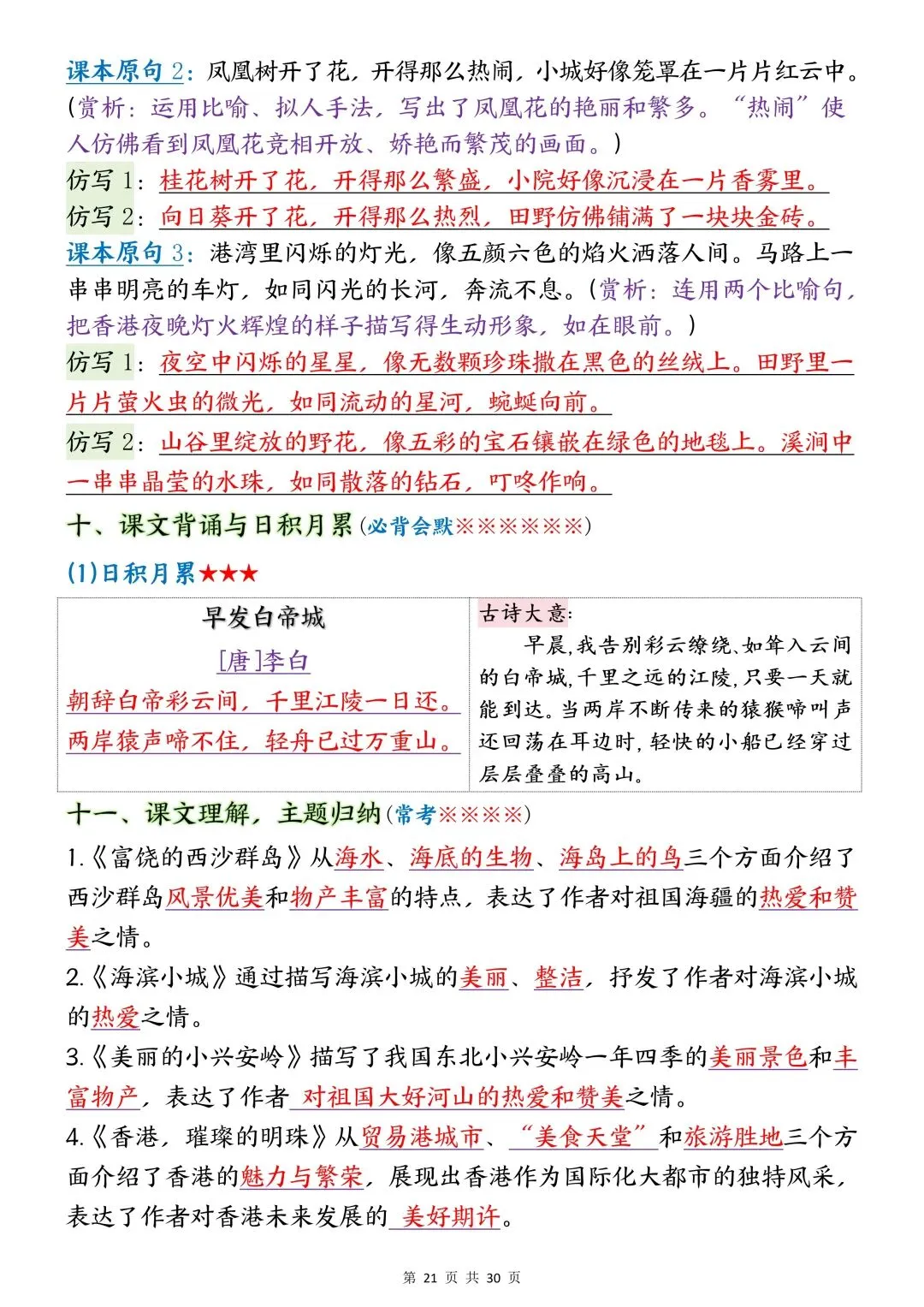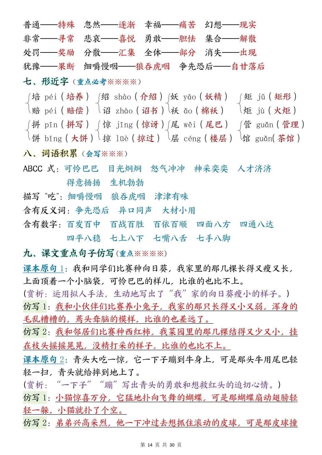 包含词语默写、易错字音、多音字、词语搭配、近反义词、全册必背古诗+文言文、课文优秀人物品质及说明道理、日积月累、口语交际、词语积累、形近字组词等常考知识点汇总。