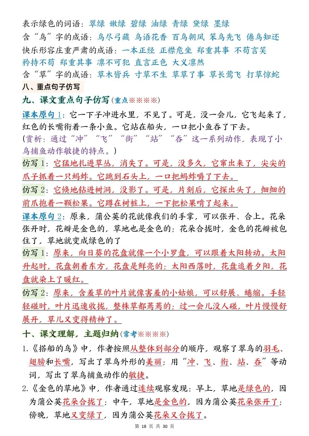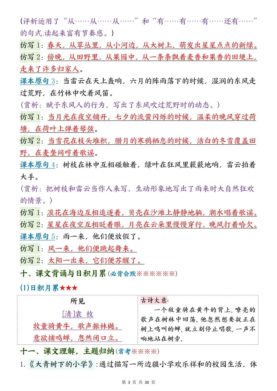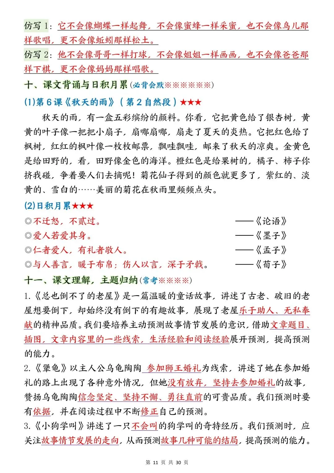 2025年秋新版三年级上册语文期末复习资料《全册必背重点知识点总结+考点梳理汇总》电子版可打印