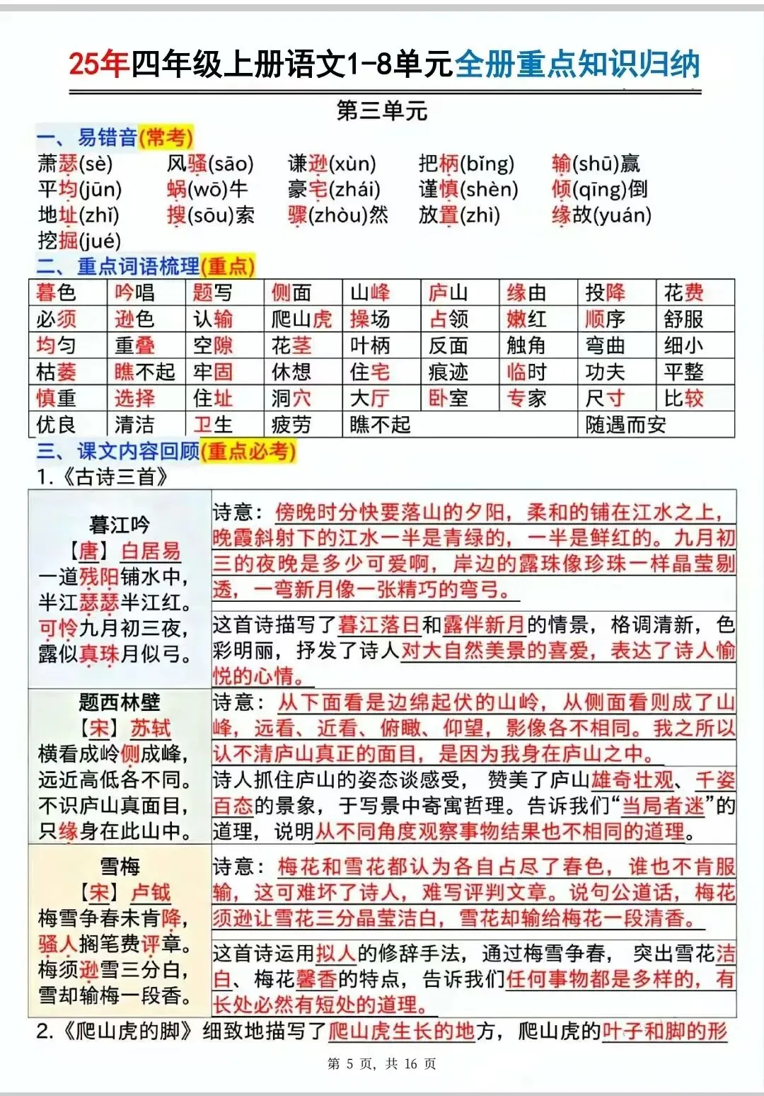 大家好,我是青荷,见字如面。四上三单元怎么复习?来看我的整理与思考吧!