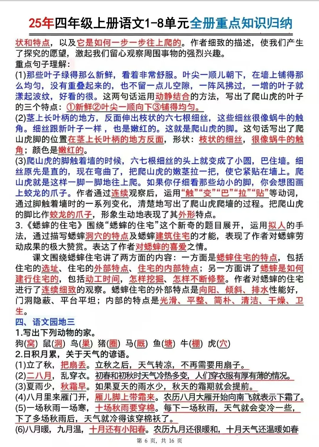 4、课文把蟋蟀比作人,把蟋蟀的巢穴比作人的住宅,说说这样写的好处。读下面的片段,想想在表达方法上与课文有什么不同。