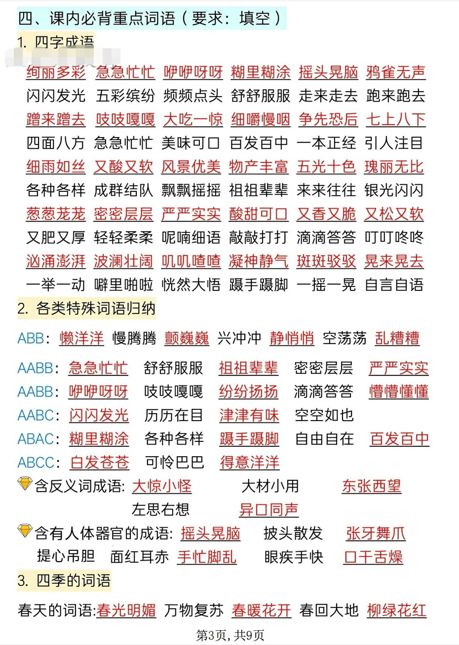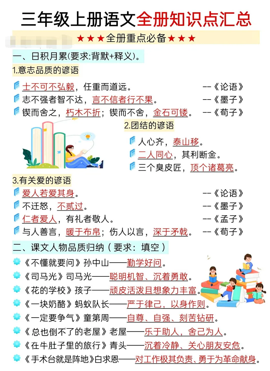 期末复习资料:三年级上语文全册知识点梳理(可下载打印)