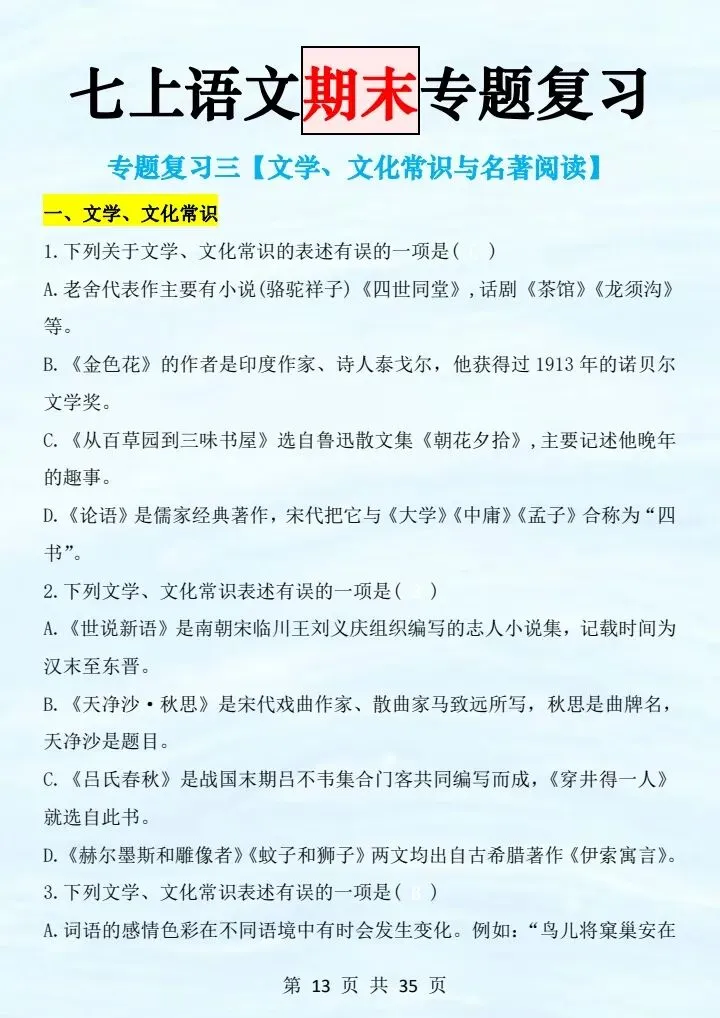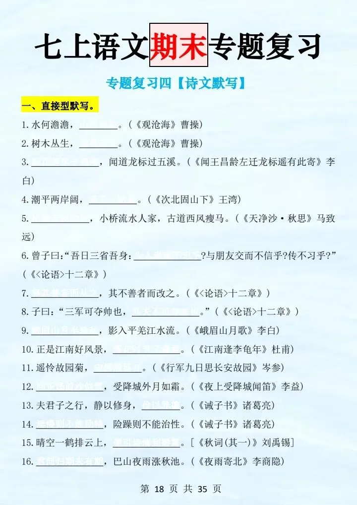 即可免费领取《七年级(上)语文期末专题复习》完整PDF版!