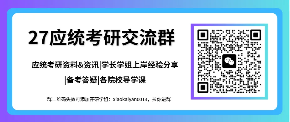 如果还没有确定好院校的话,也不用担心,我们这边有专业的应统择校老师来帮助你选择院校,此外笑开研团队整理的27应统择校手册,把择校思路要点讲透,还附上各院校的详细招录数据,零基础小白也能轻松上手!感兴趣的同学可添加开研学姐:xiaokaiyan0013领取~