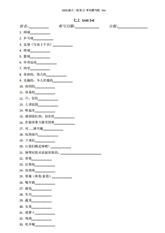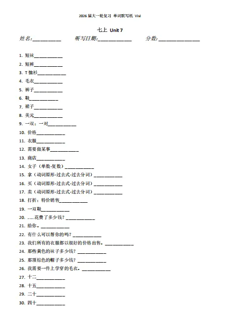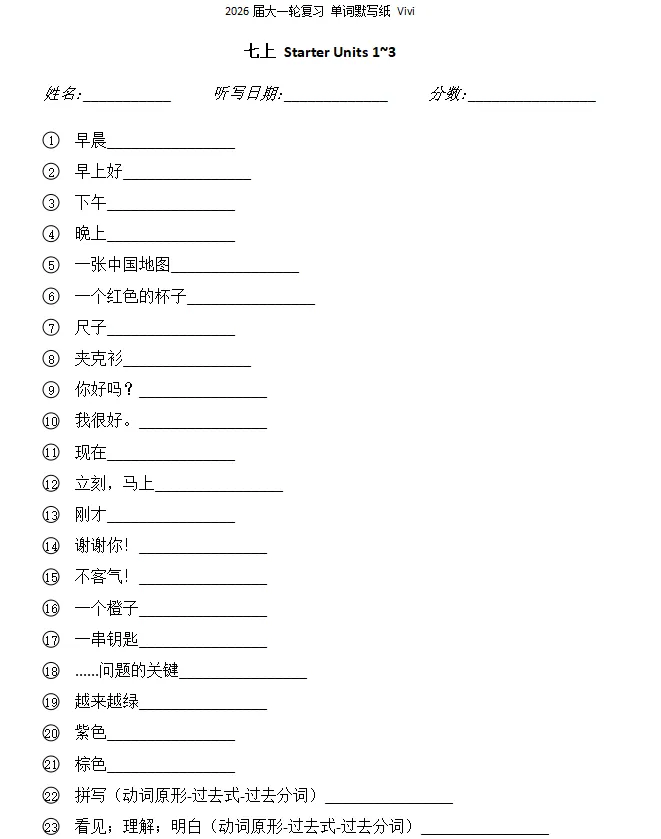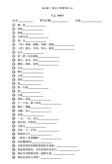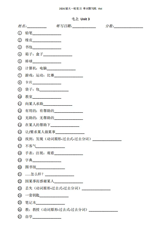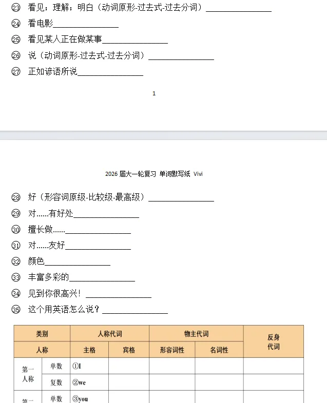 我的一轮复习资料之默写纸
