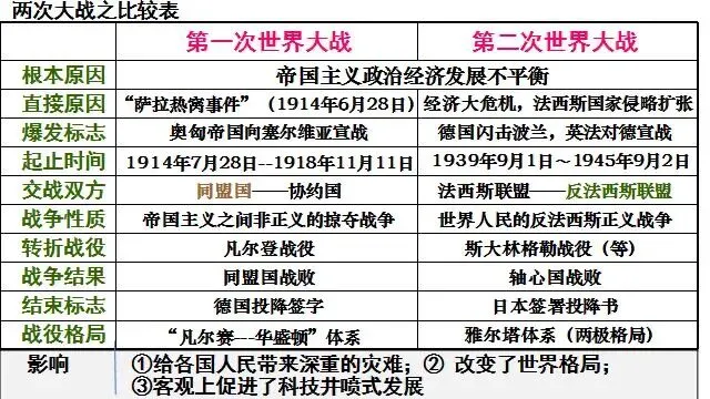(一)两次世界大战对比