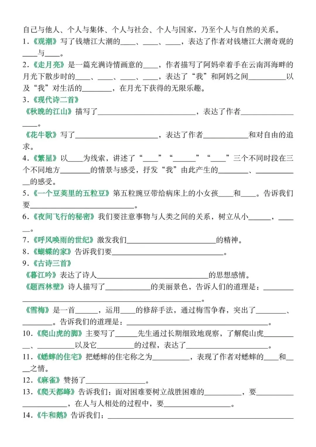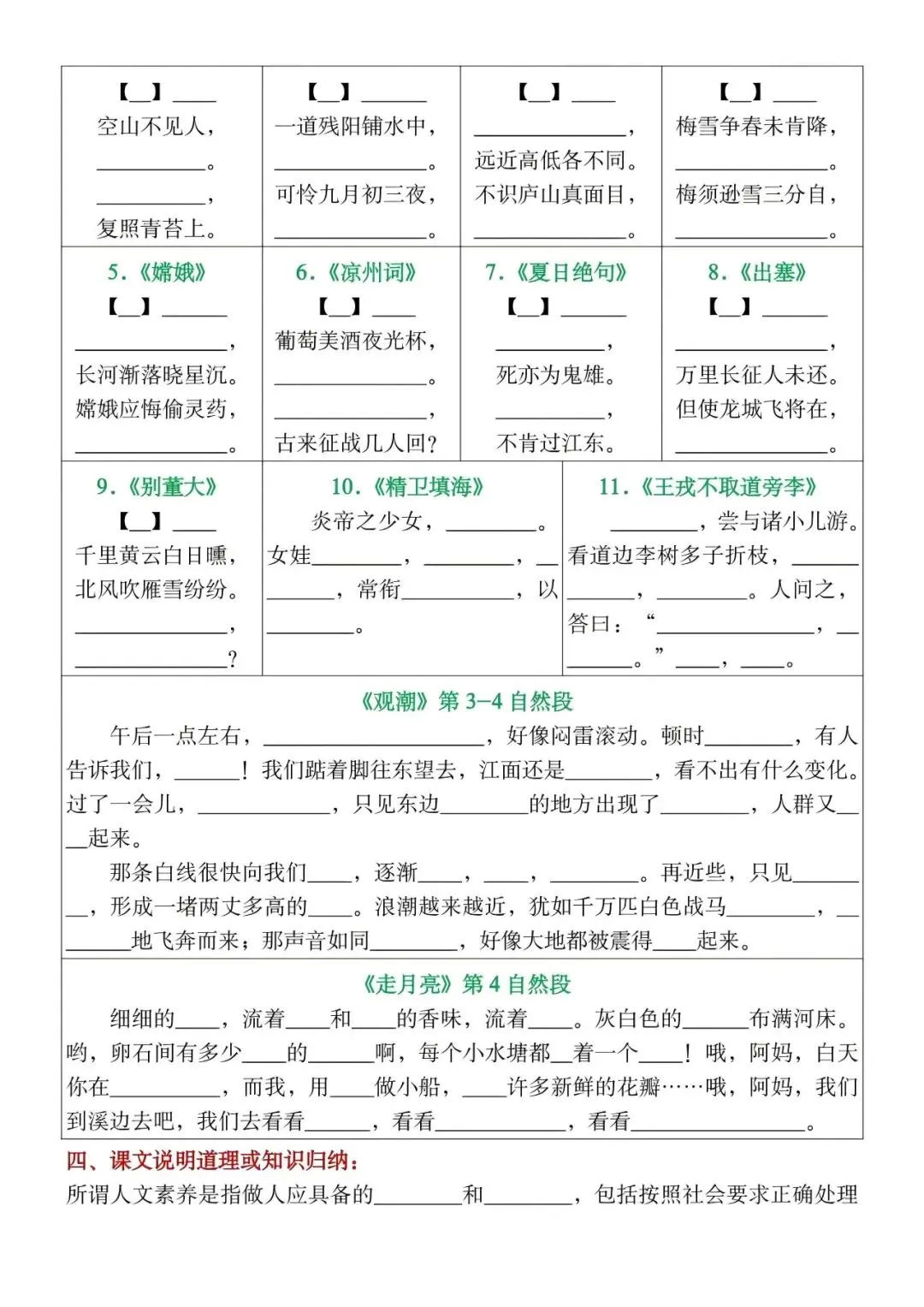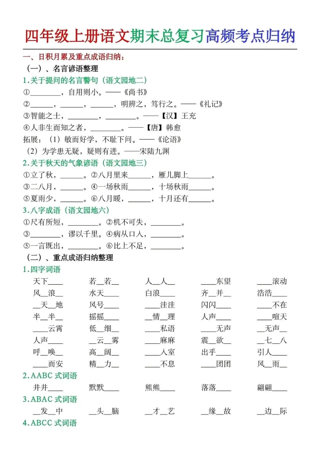 【资料整理】四年级上册语文期末总复习高频考点归纳练习