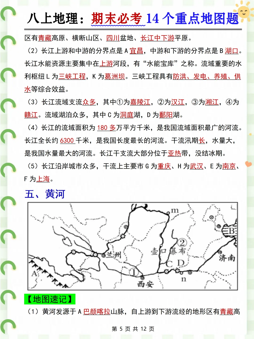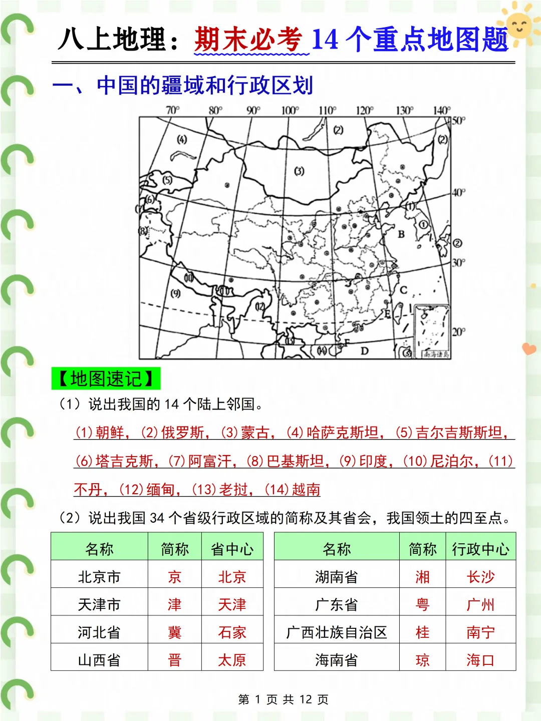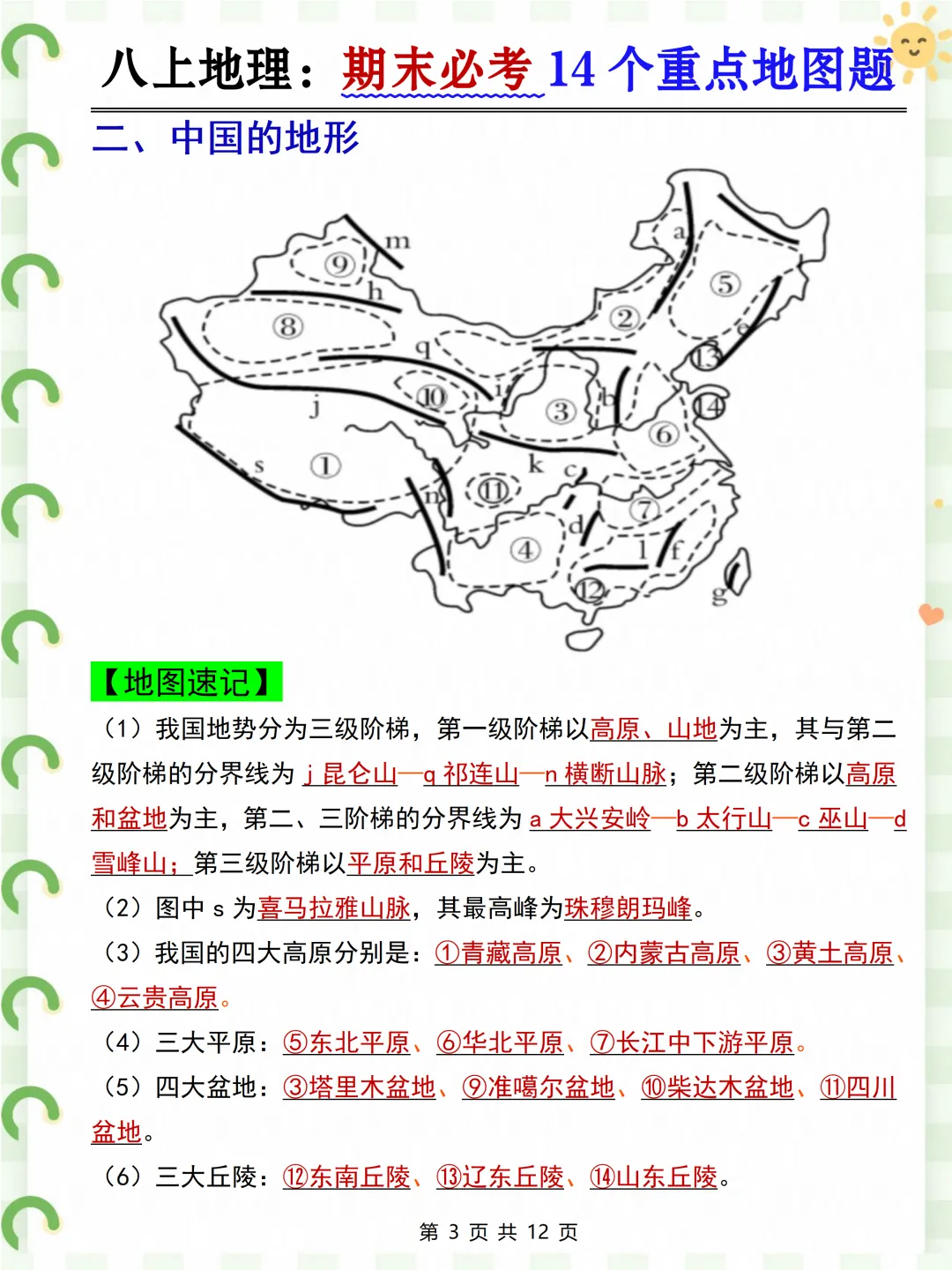 老师专门整理了【八上地理期末必考14个重点地图题】,都是本学期地理的核心难点地图。家长可以打印出来,让孩子考前吃透,期末考试让孩子轻松弯道超车 !!