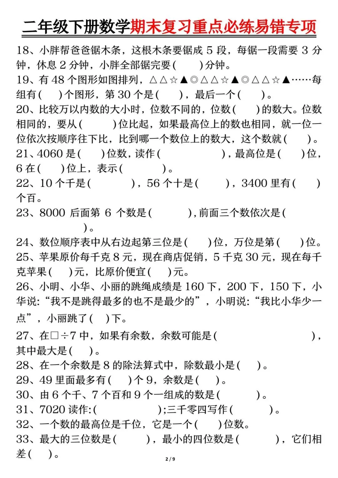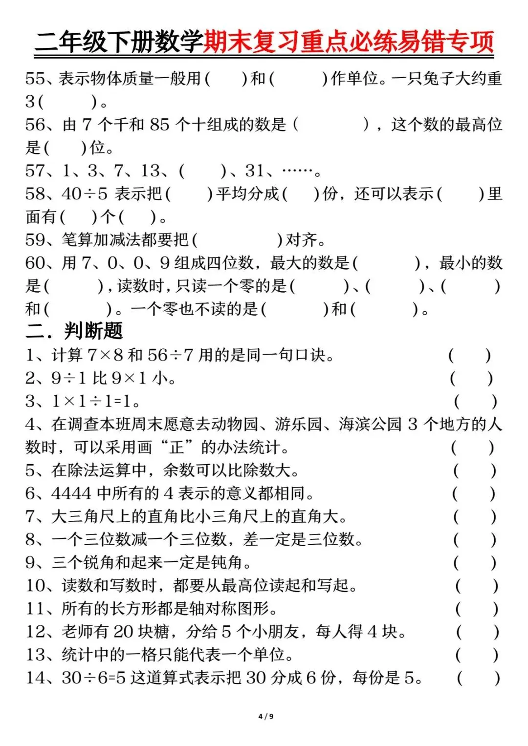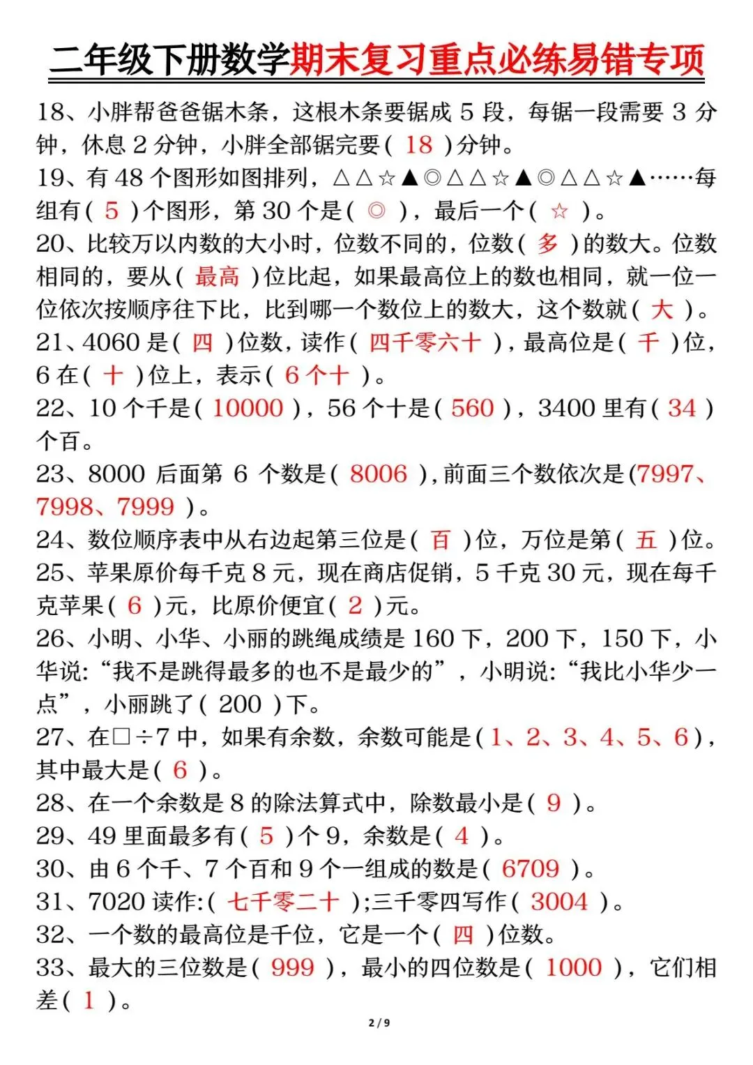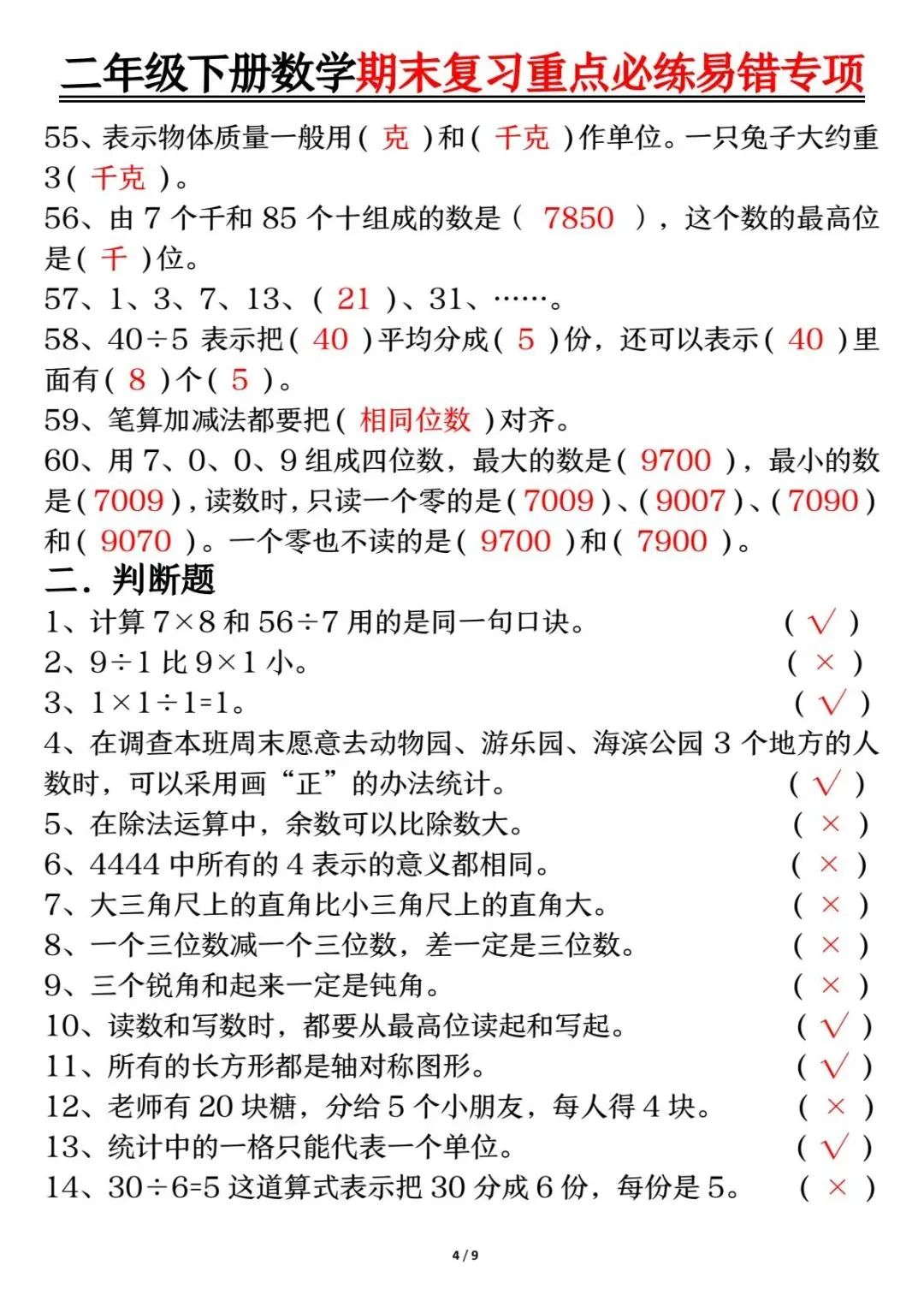 二下数学期末复习重点必练易错专项(练习+答案18页).pdf