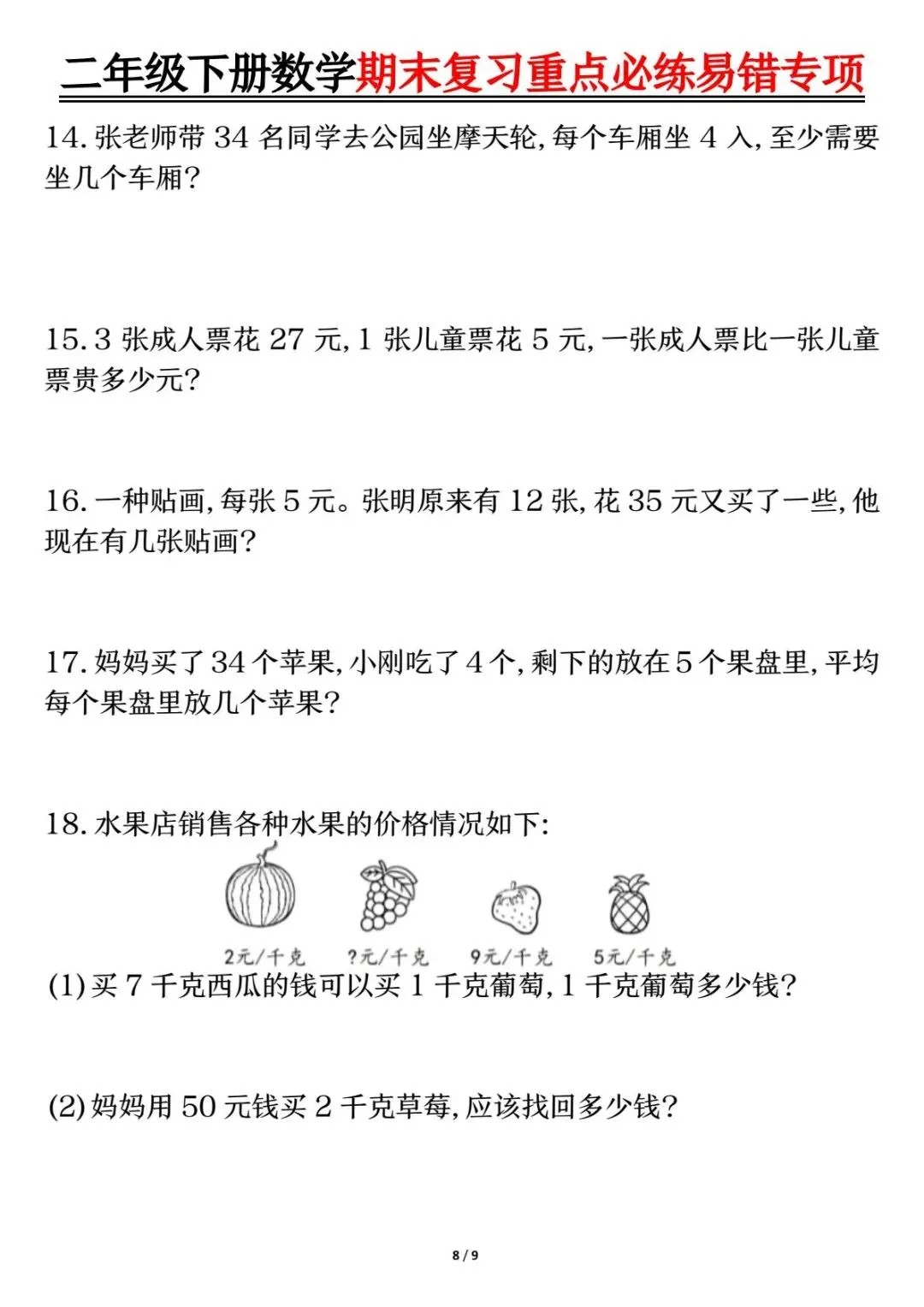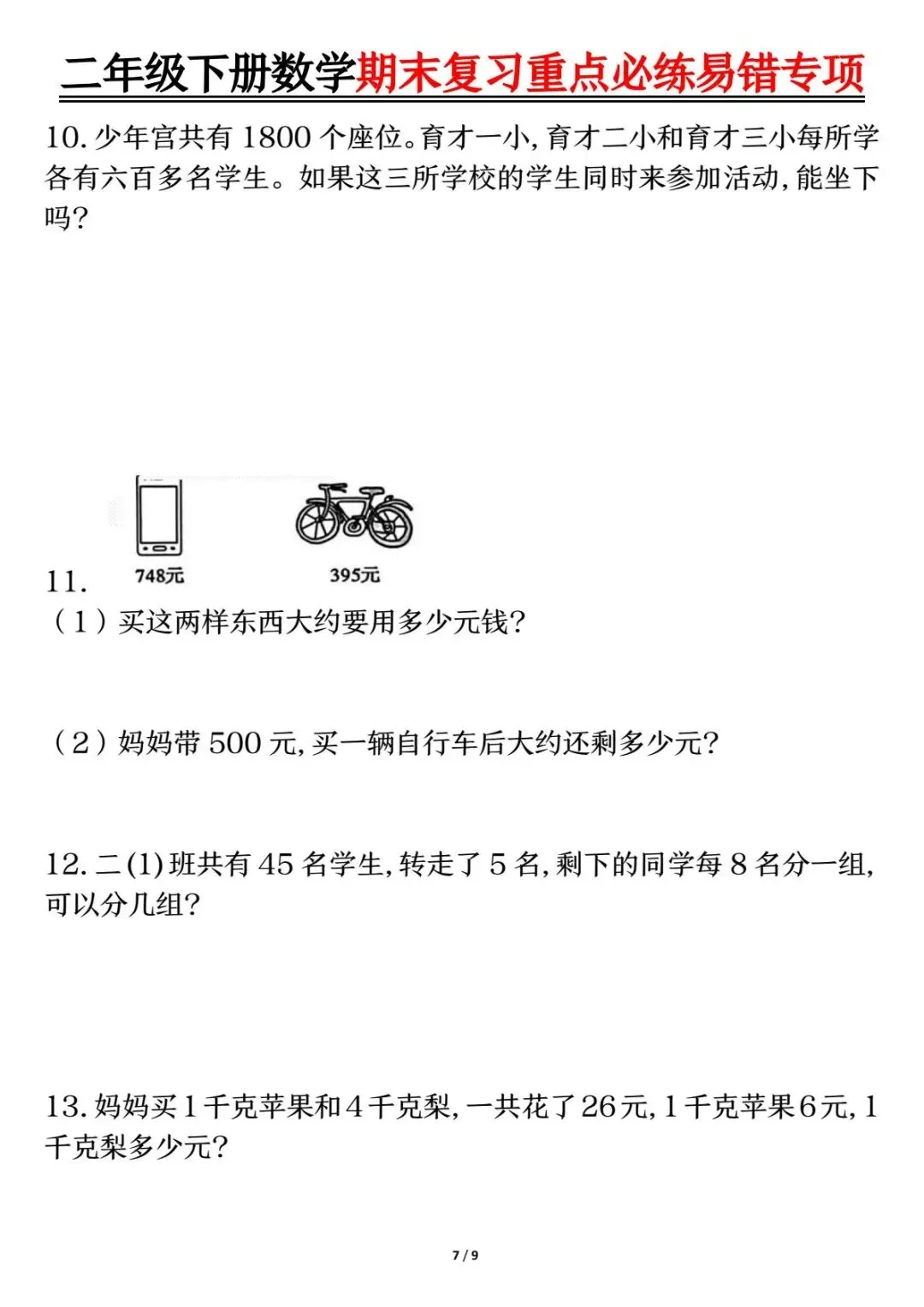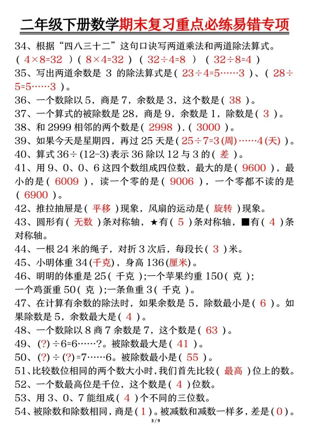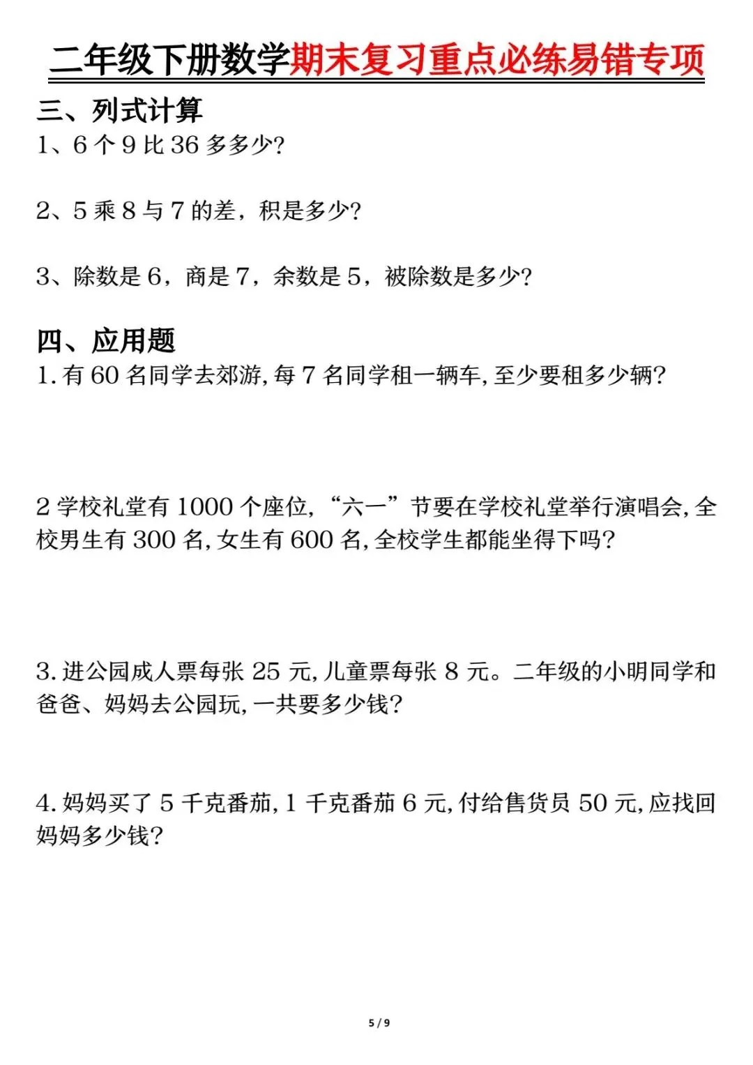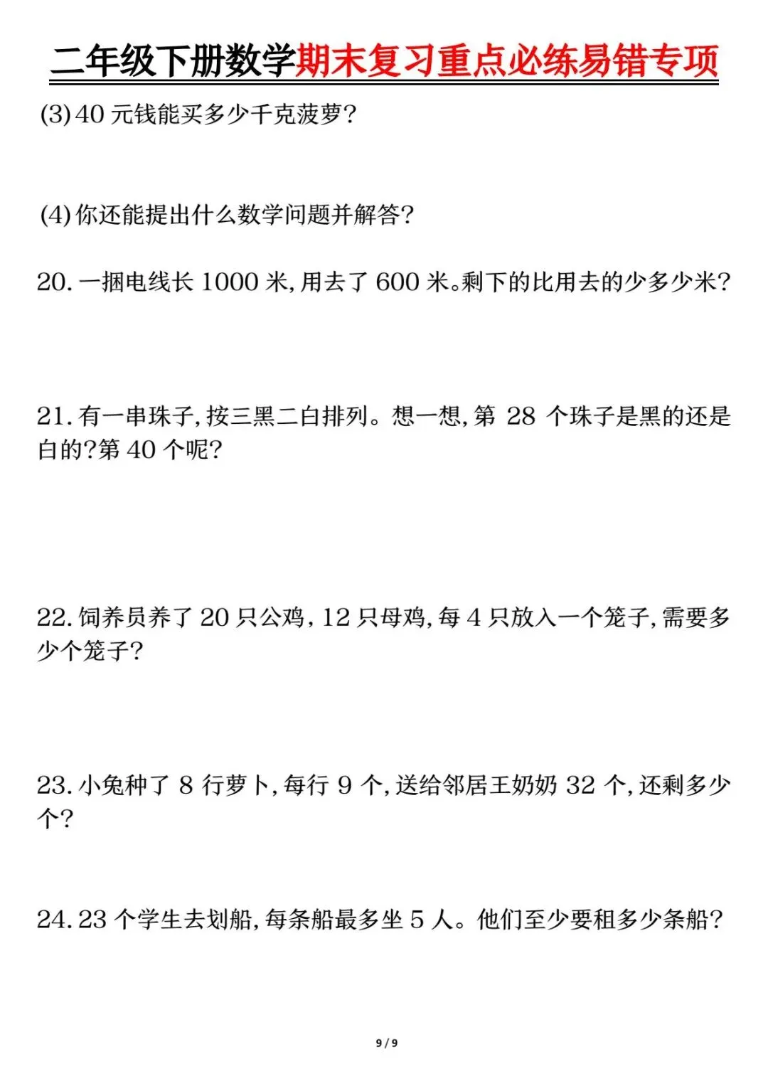 二下数学期末复习重点必练易错专项(练习+答案18页).pdf