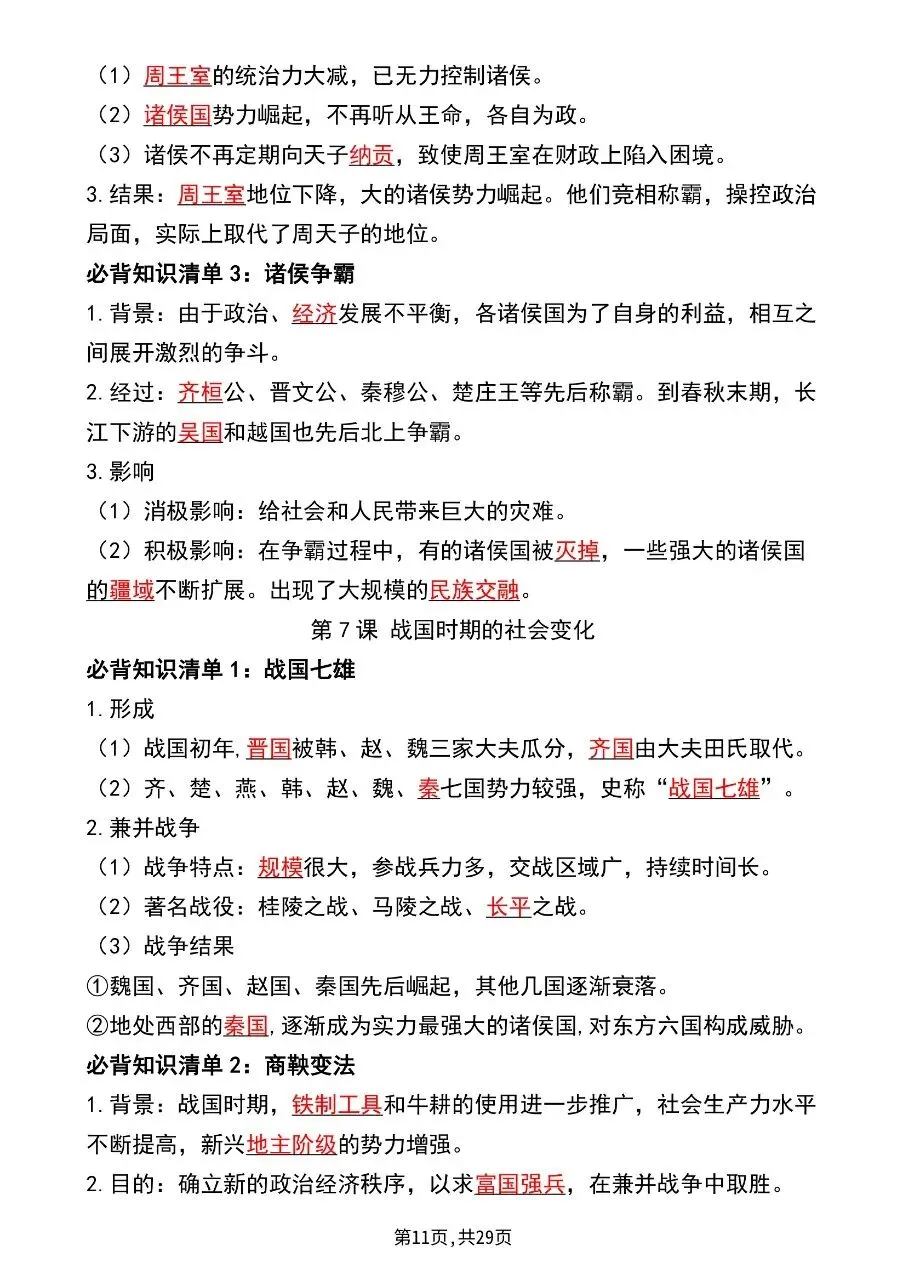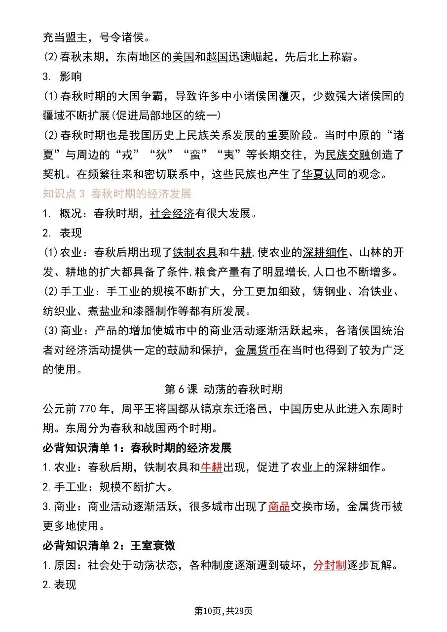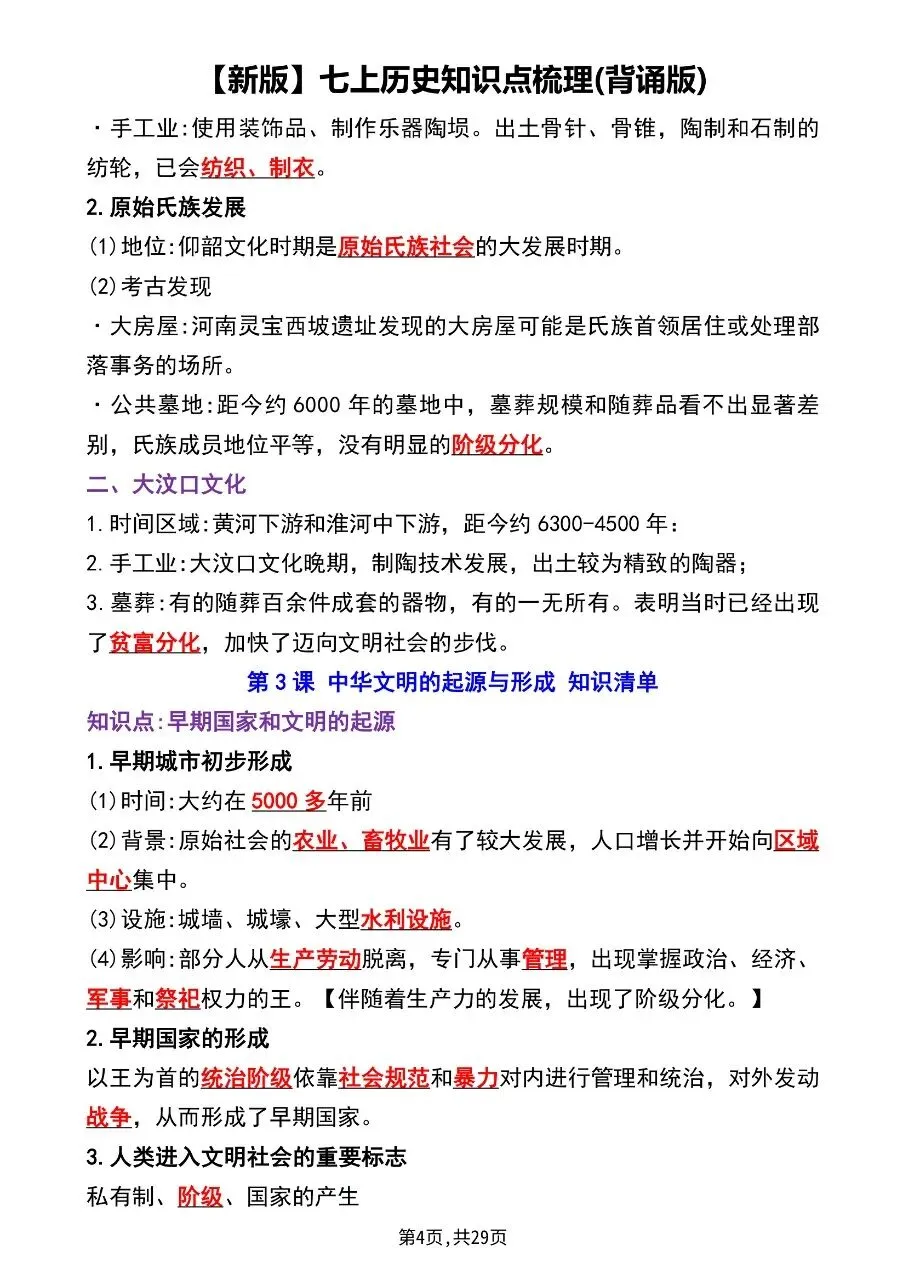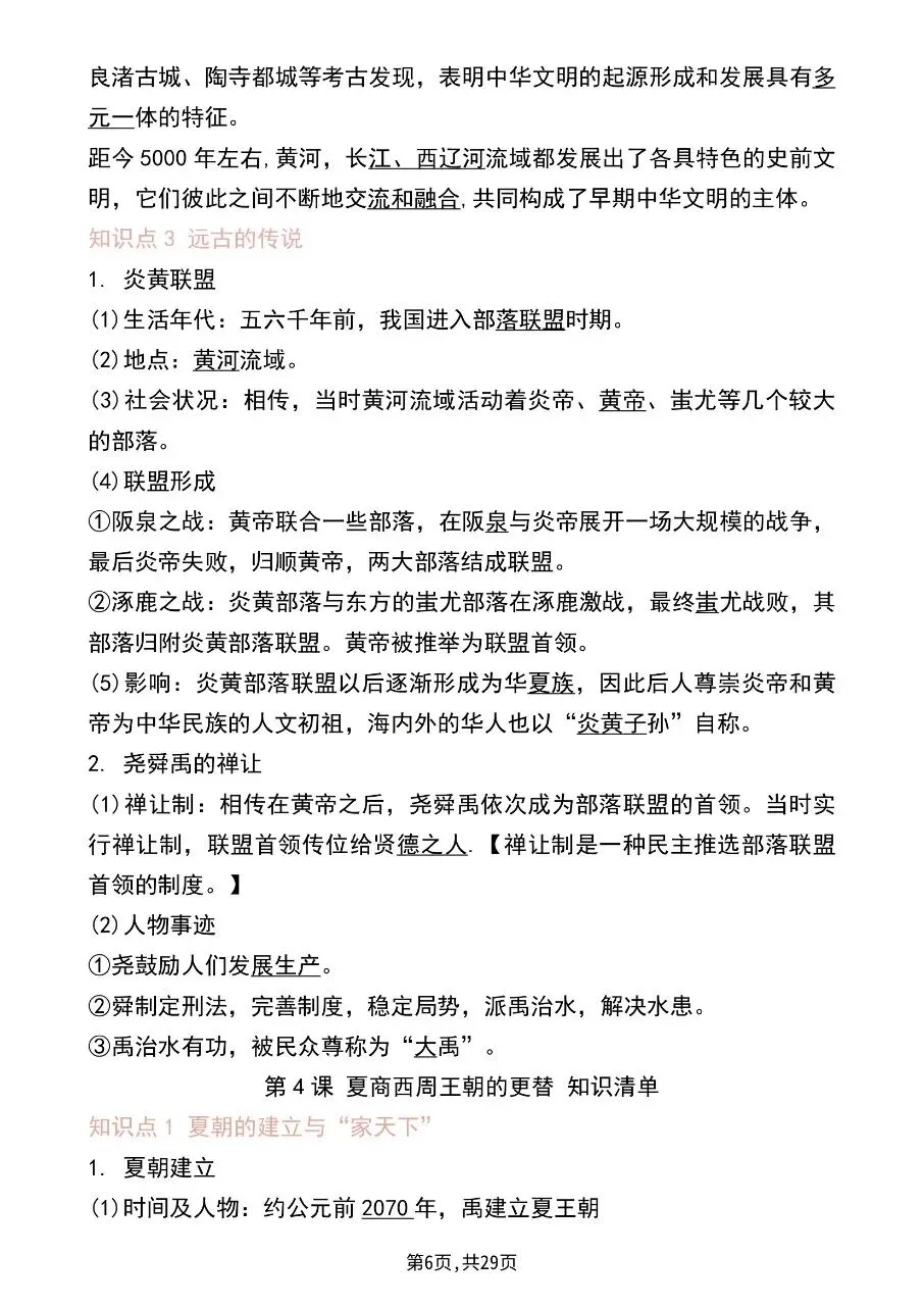 【七上历史】七年级初一上册历史期末复习重点知识点总结背诵