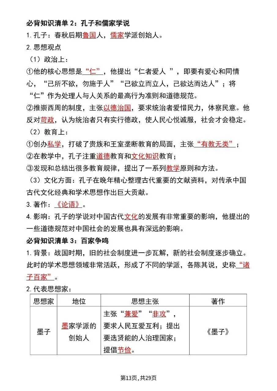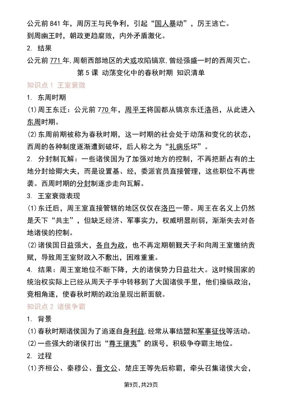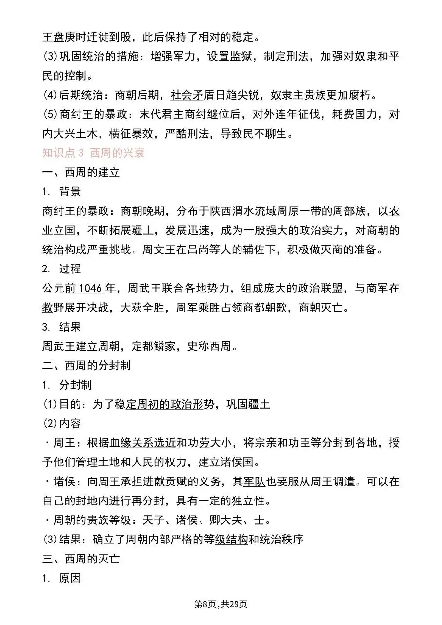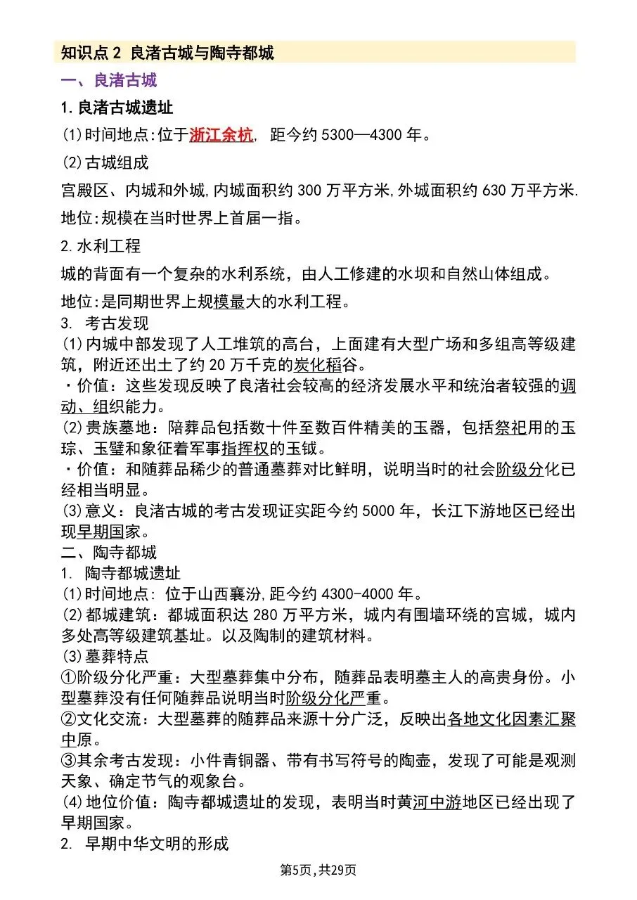 【七上历史】七年级初一上册历史期末复习重点知识点总结背诵