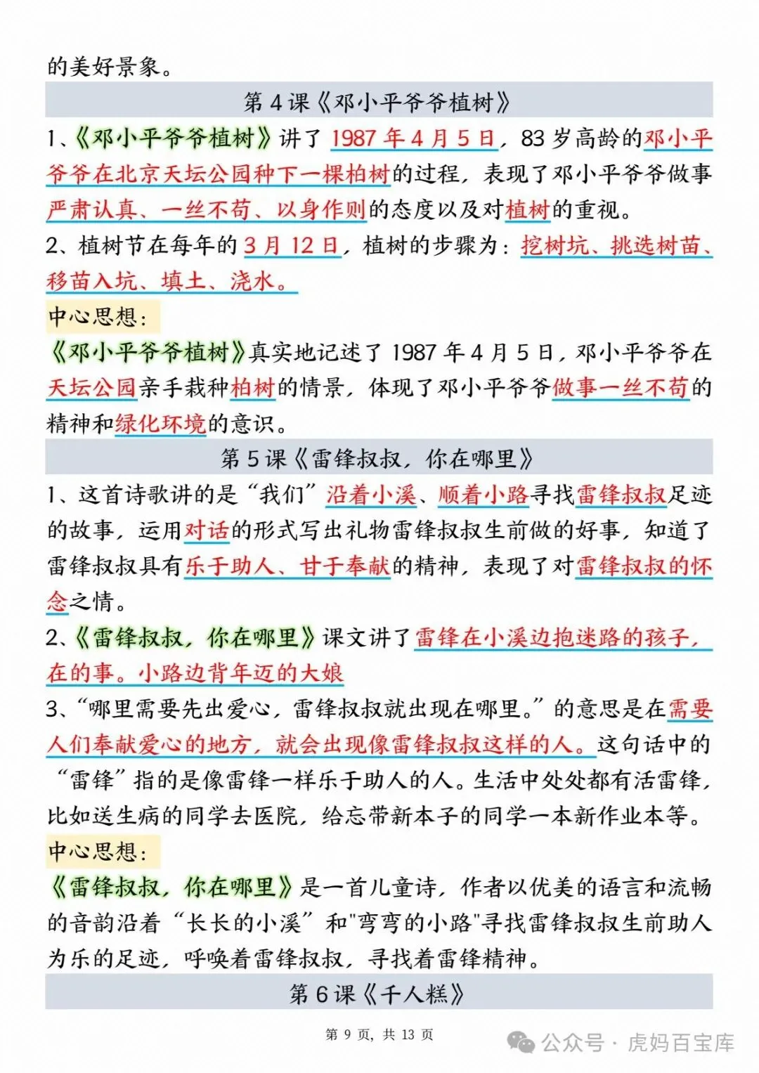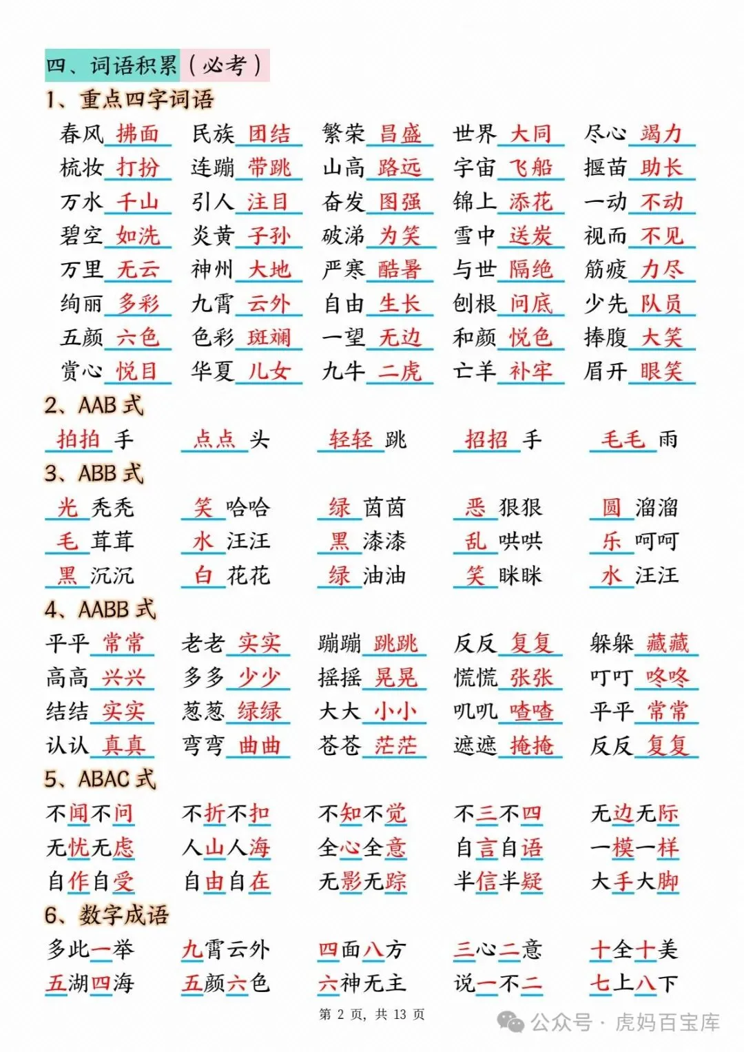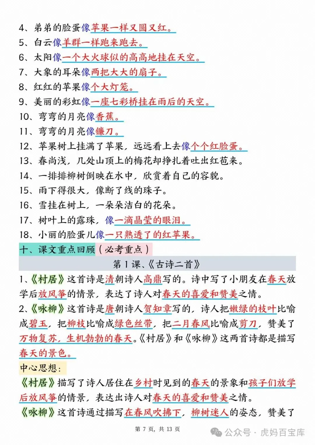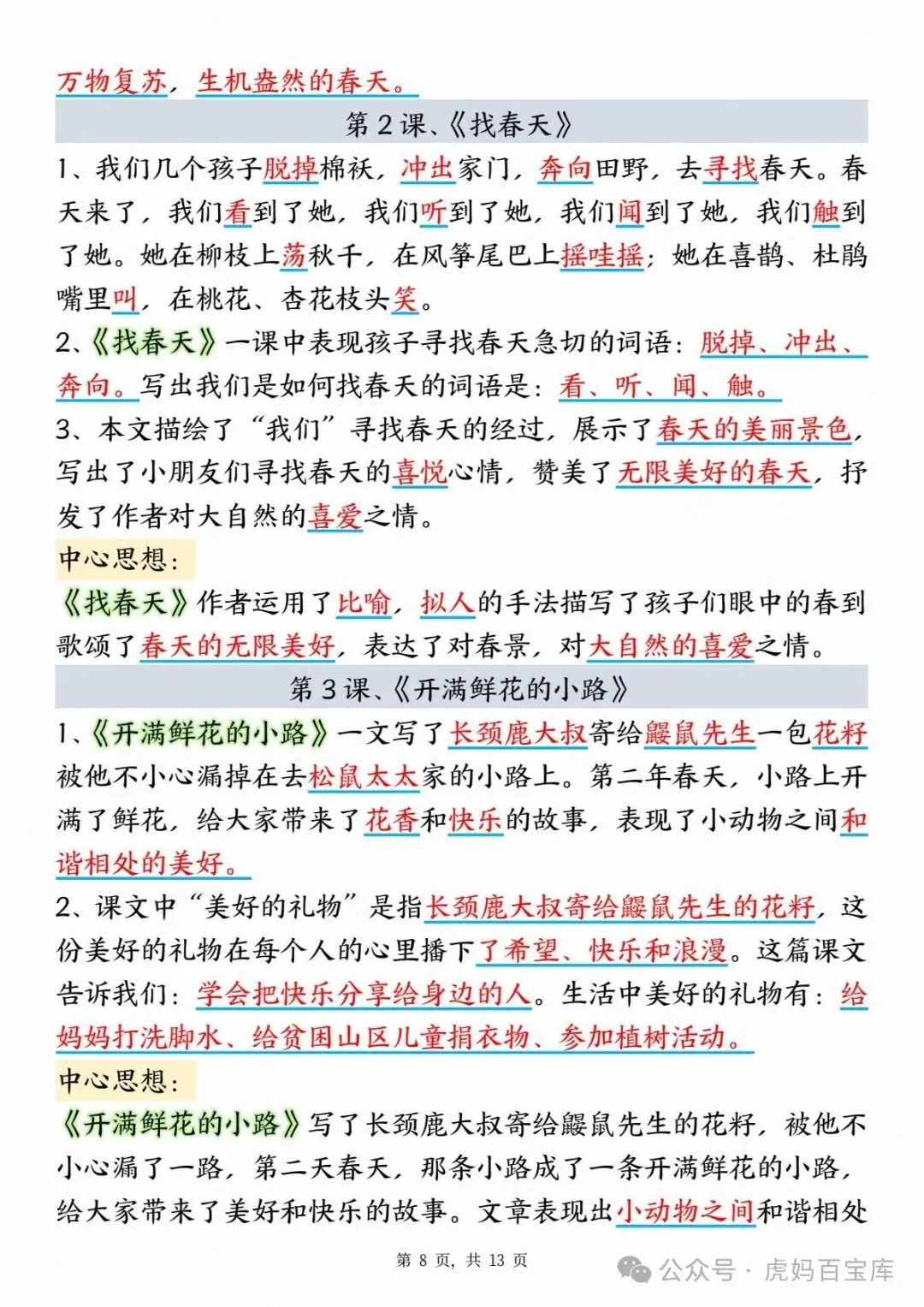 【期中复习资料】二年级下册语文《期中复习核心考点汇总》十大知识点全覆盖 可打印
