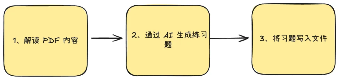 这件事情的底层逻辑不难:解读 PDF 的文字,交给大模型出题,最后写入文件。