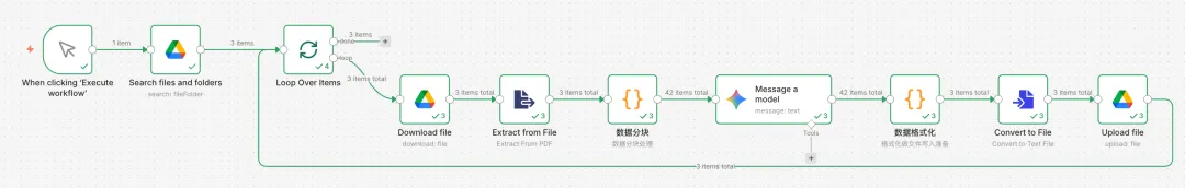 需要说明的是,我是以PDF资料为例,如果材料中还有其他格式,可以在工作流中增加分支,分别解析,集中处理。