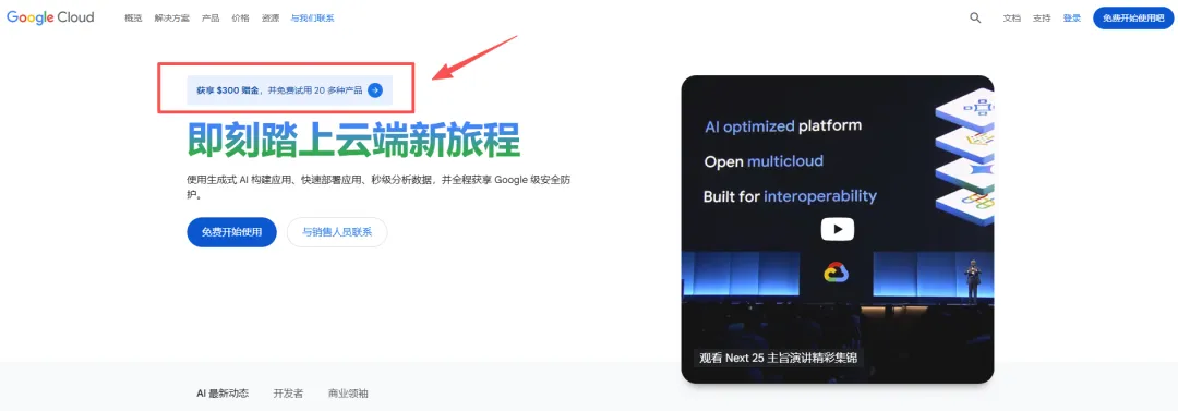 浏览器访问:https://cloud.google.com/,谷歌近期推出了300$赠金的活动,直接点击链接。